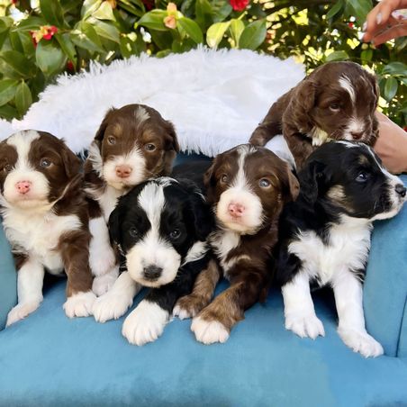 Our puppies include blue merle, red merle, black phantom, black tri-color, and red tri-color. Colors will vary depending on the parent dogs.