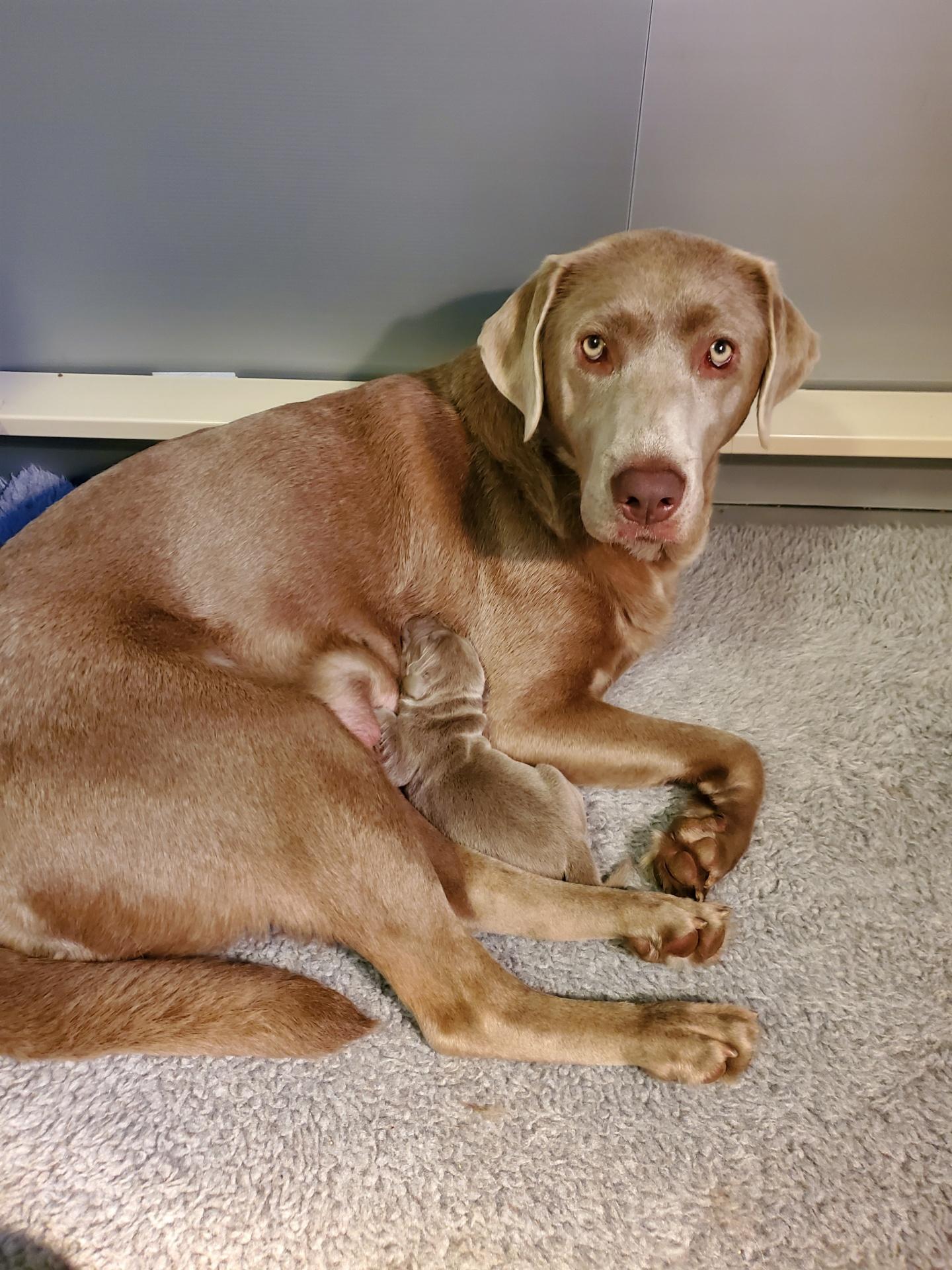 Charlie is a female Dilute Retriever. Carefully selected as a great representative of her breed, Danette decided to make her part of their program. Danette has passed Good Dog’s screening process, which involved a review of their breeding practices, environment, and the mental and physical health of their dogs.