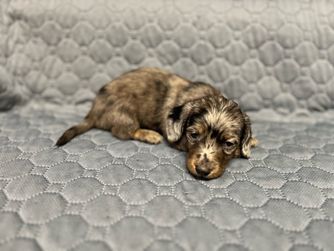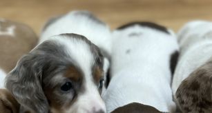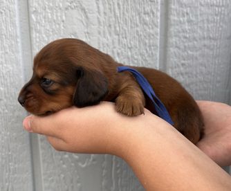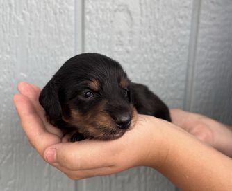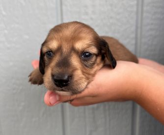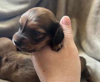 Trish was amazing to work with, and I highly recommend her for anyone looking for a dachshund puppy! It is very easy to tell these pups are her family and so very loved! From the very first contact she has been open and friendly. After we chose our sweet pup she kept us updated on his progress, sent regular pictures while we were anxiously waiting for pick up date, and even offered to start calling him by a name if we had one picked out. She met up with us to make pick-up seamless. She had a bag of goodies for him at pickup including a blanket that smelled like his mom and siblings to help with the transition. The whole experience has been great!