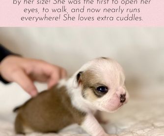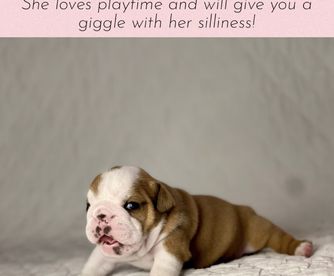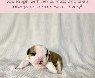 Emma is a female Bulldog. Carefully selected as a great representative of her breed, Jacquelin decided to make her part of their program. Jacquelin has passed Good Dog’s screening process, which involved a review of their breeding practices, environment, and the mental and physical health of their dogs.