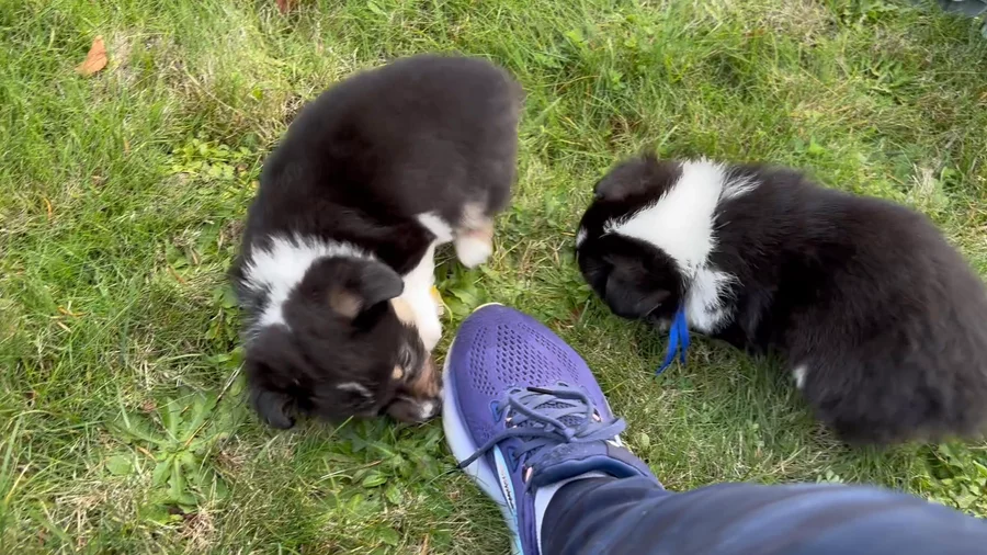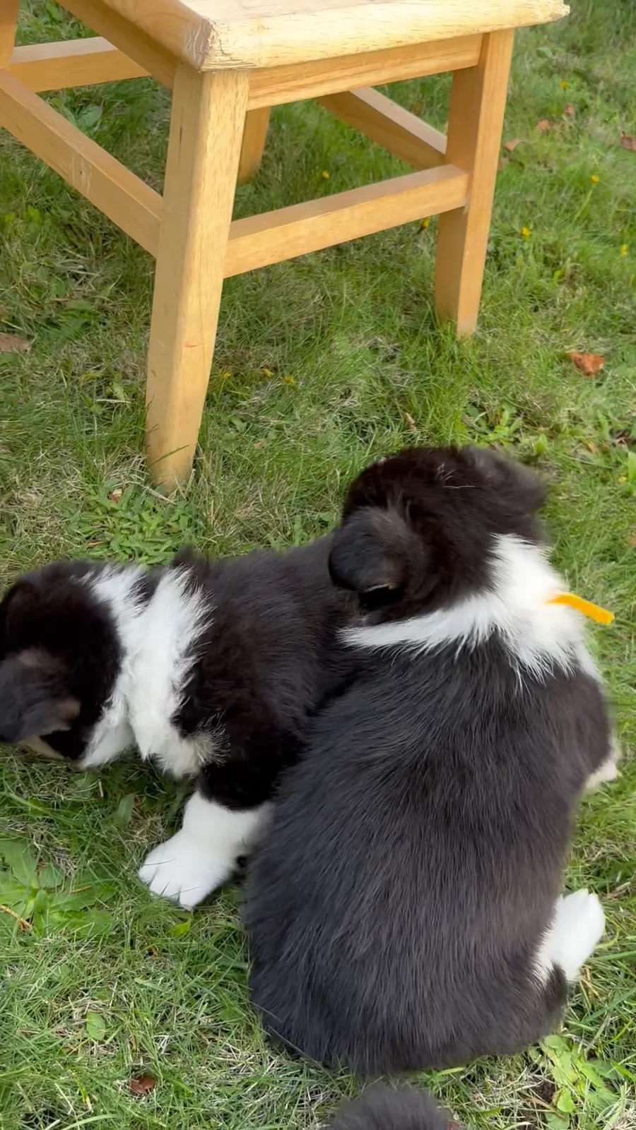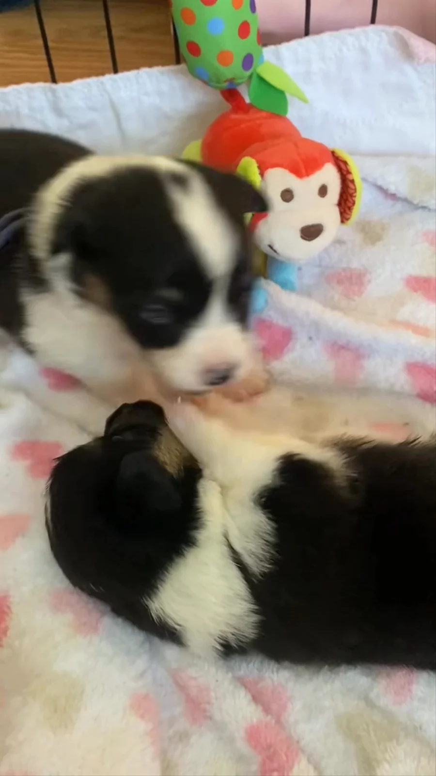 Puppies are three weeks old. Eyes open, ears open. They are now playing and barking