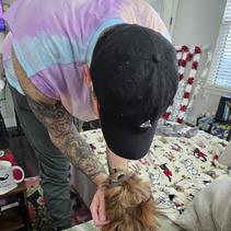 She’s a sweet girl that is always up for an adventure. She loves meeting new people, car ride, and going somewhere. She loves cats! Thinks they are the greatest thing. Is a cuddler and loves to nap.