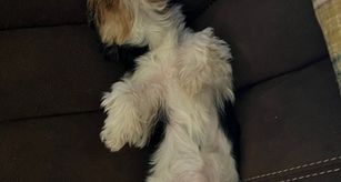 Rudie is a carefree, lovable, 5 pound extreme white sable Yorkie.