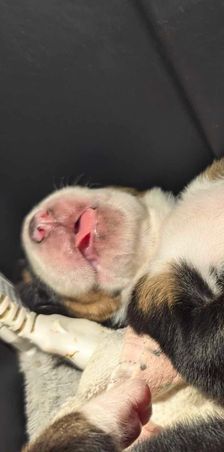 With 11 puppies, Gidget takes her break times VERY seriously. A nap on her circle bed is her favorite thing to do while the babies enjoy their milk coma!🦭🧊🐋🐼❄️