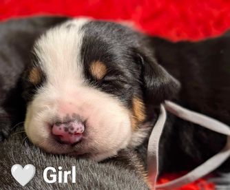 Hollar is a female Greater Swiss Mountain Dog. Carefully selected as a great representative of her breed, Dana decided to make her part of their program. Dana has passed Good Dog’s screening process, which involved a review of their breeding practices, environment, and the mental and physical health of their dogs.