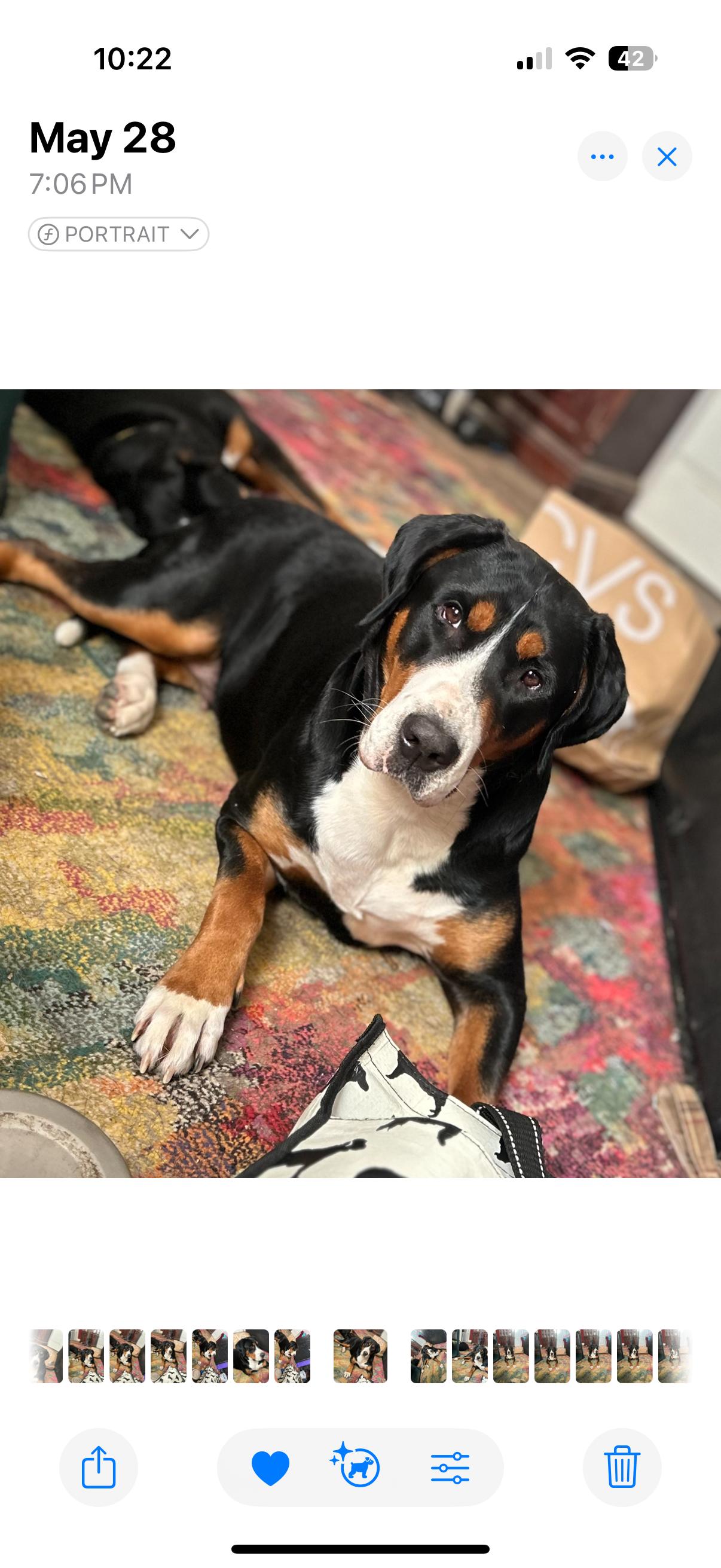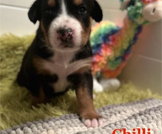 Dani is a female Greater Swiss Mountain Dog. Carefully selected as a great representative of her breed, Dana decided to make her part of their program. Dana has passed Good Dog’s screening process, which involved a review of their breeding practices, environment, and the mental and physical health of their dogs.