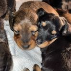 Almost a whole month old. Mastering the side eye. They’re 50% love, 20% play, 20% bottomless hunger and 10% bark.