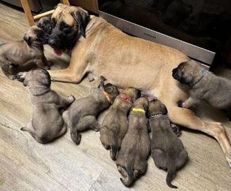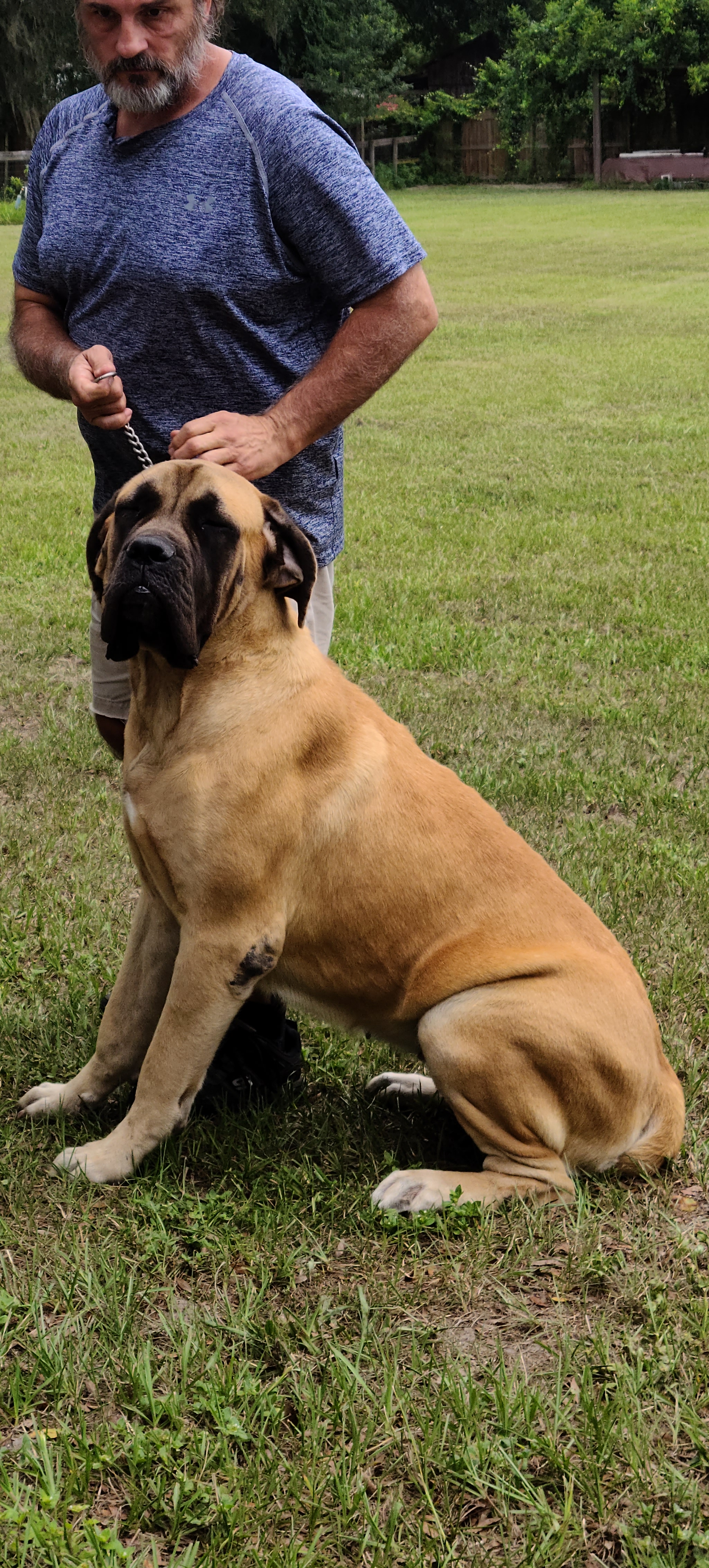 I'm Carol S., the breeder behind Sims English Mastiffs located in Inverness, FL. We take pride in our Mastiffs and when we do have a litter we strive to produce to meet AKC/OFA standards. We research our stud's pedigrees prior to breeding to look at getting all the strengths of each canine being bred to ensure we are breeding for soundness, structure, temperament, and health.