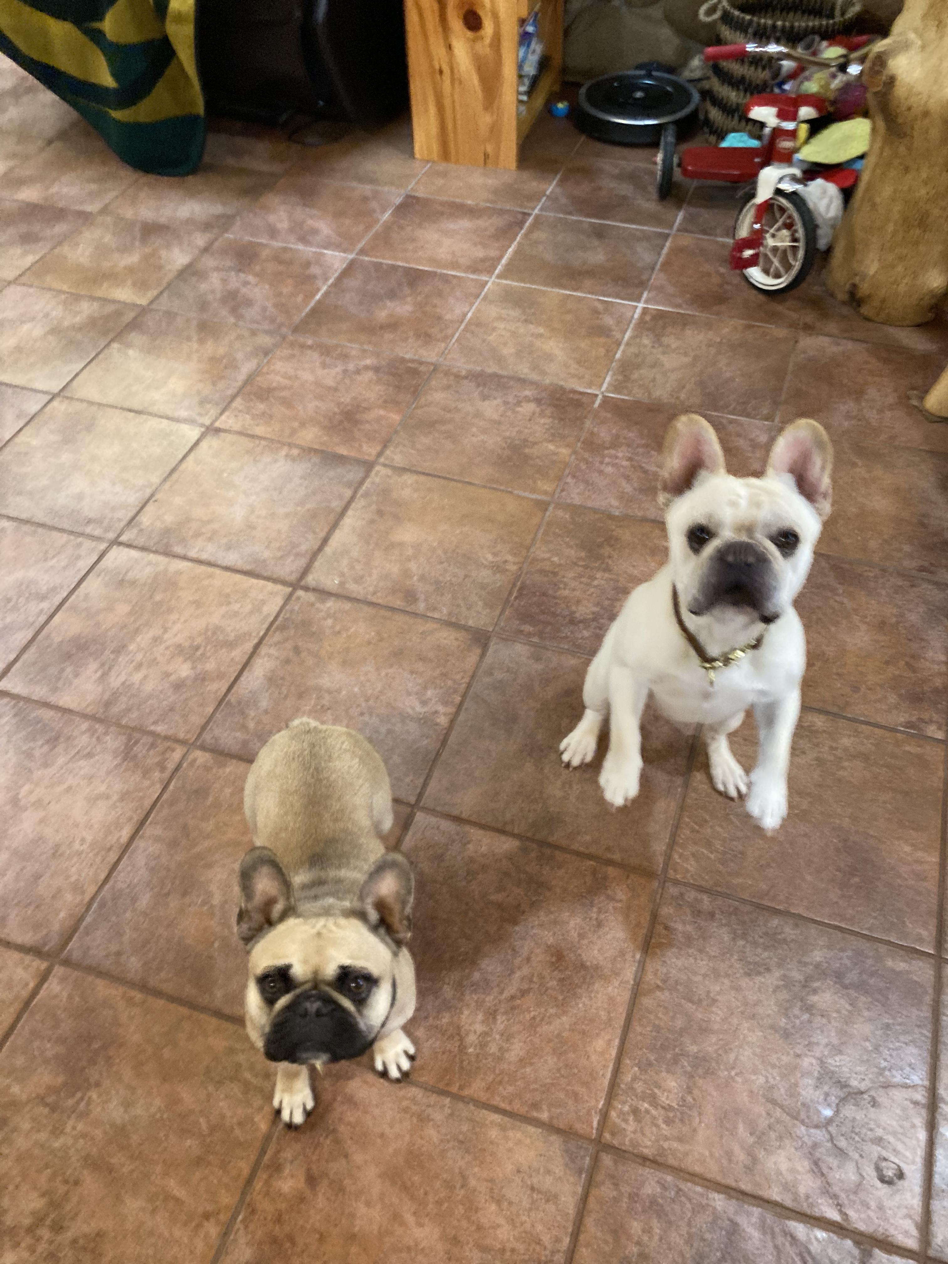 Our French Bulldog puppies include brindle, cream, and fawn. Staffordshire Bull Terrier puppies include fawn and brindle. Colors will vary depending on the parent dogs.