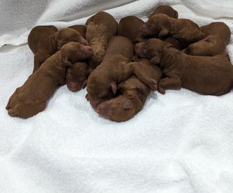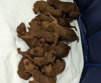 Our puppies are red. Colors will vary depending on the parent dogs.