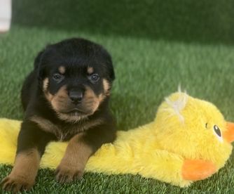 Sheba is a female Rottweiler. Carefully selected as a great representative of her breed, Nina decided to make her part of their program. Nina has passed Good Dog’s screening process, which involved a review of their breeding practices, environment, and the mental and physical health of their dogs.