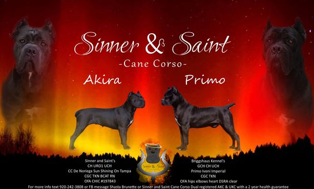 I had a wonderful experience working with Shasta from sinner and saint cane corso! From the very beginning, she was knowledgeable, and incredibly caring about her dogs. She kept me updated throughout the entire process with pictures, health updates, and information about the puppy's development. Her dogs are clearly raised with love and attention. When I brought my puppy home, it was obvious that she had been well cared for -confident and healthy. What I appreciated most was Shasta's communication. Every question I had was answered promptly, and she made sure I had all the support I needed after bringing my puppy home. I highly recommend sinner&Saint to anyone looking for a quality, ethical breeder who truly prioritizes the well-being of her dogs. I couldn't be happier with my new addition to the family!