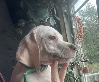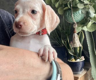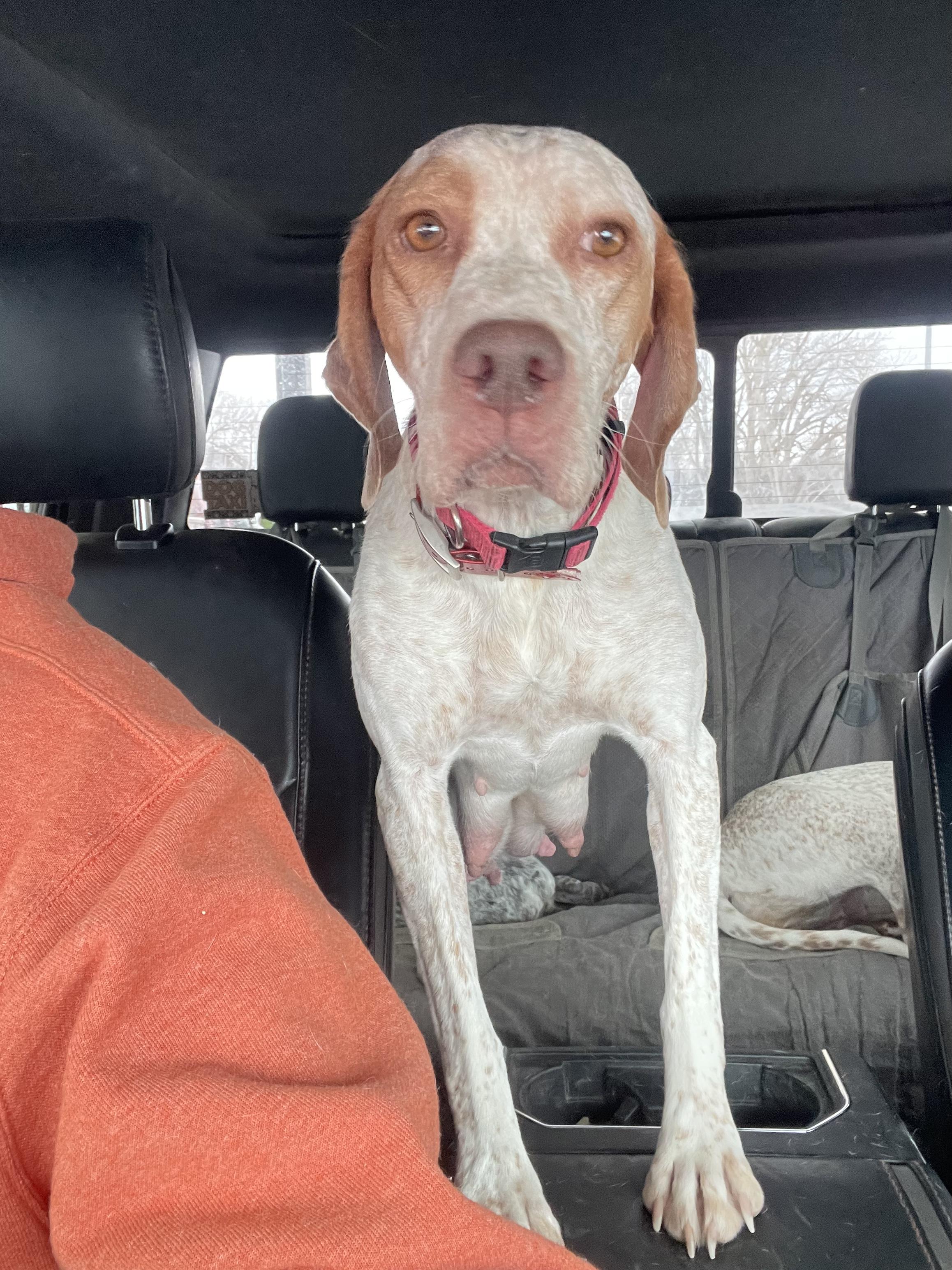 Ash is a female Braque du Bourbonnais. Carefully selected as a great representative of her breed, Amber & Steve decided to make her part of their program. Amber & Steve has passed Good Dog’s screening process, which involved a review of their breeding practices, environment, and the mental and physical health of their dogs.