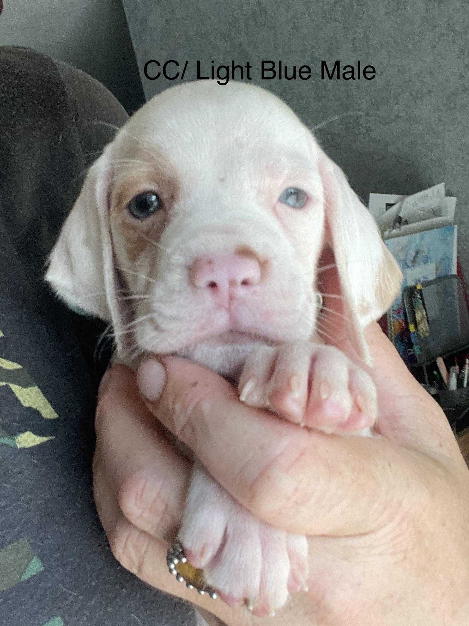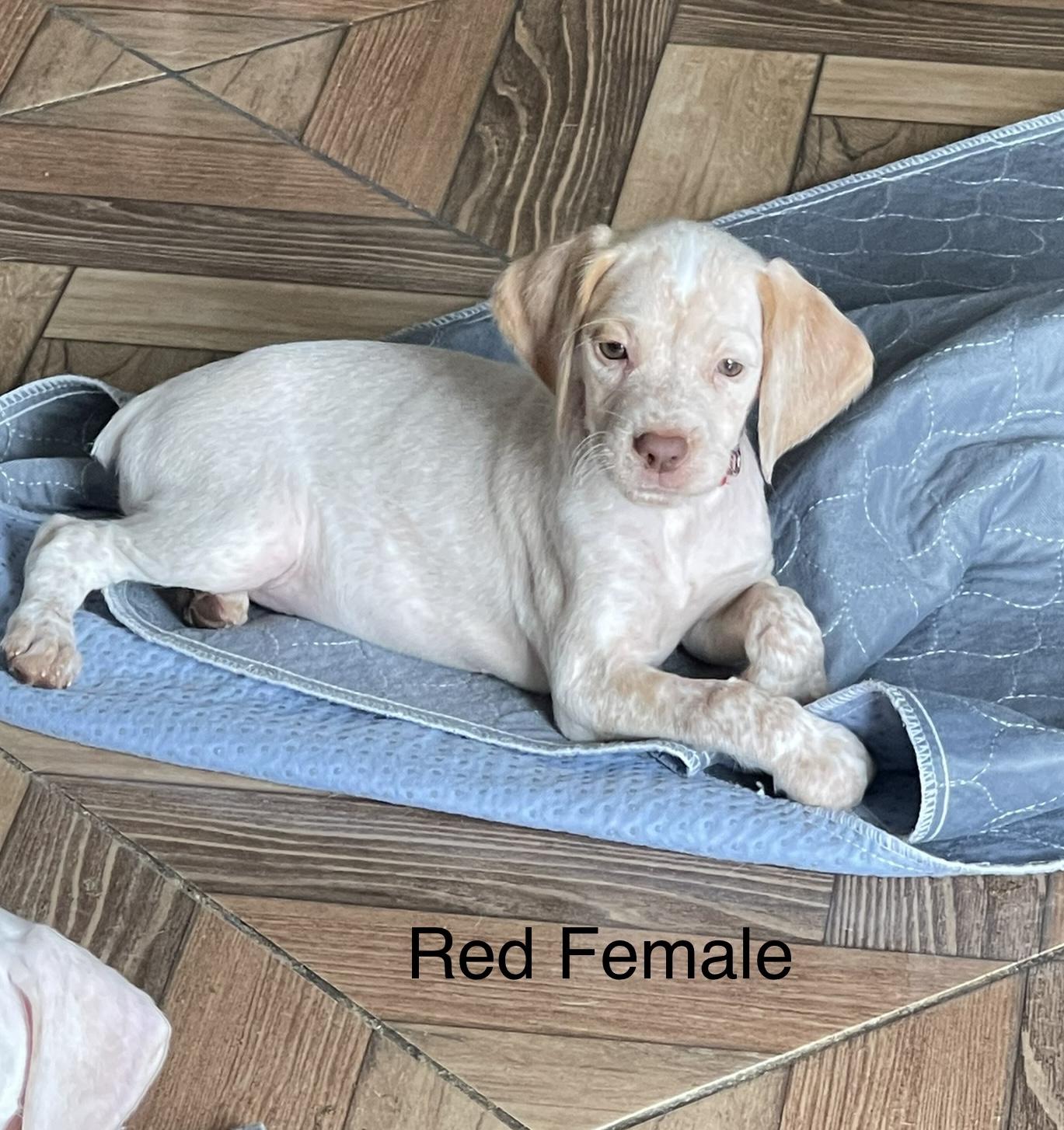 CC is a female Braque du Bourbonnais. Carefully selected as a great representative of her breed, Amber & Steve decided to make her part of their program. Amber & Steve has passed Good Dog’s screening process, which involved a review of their breeding practices, environment, and the mental and physical health of their dogs.