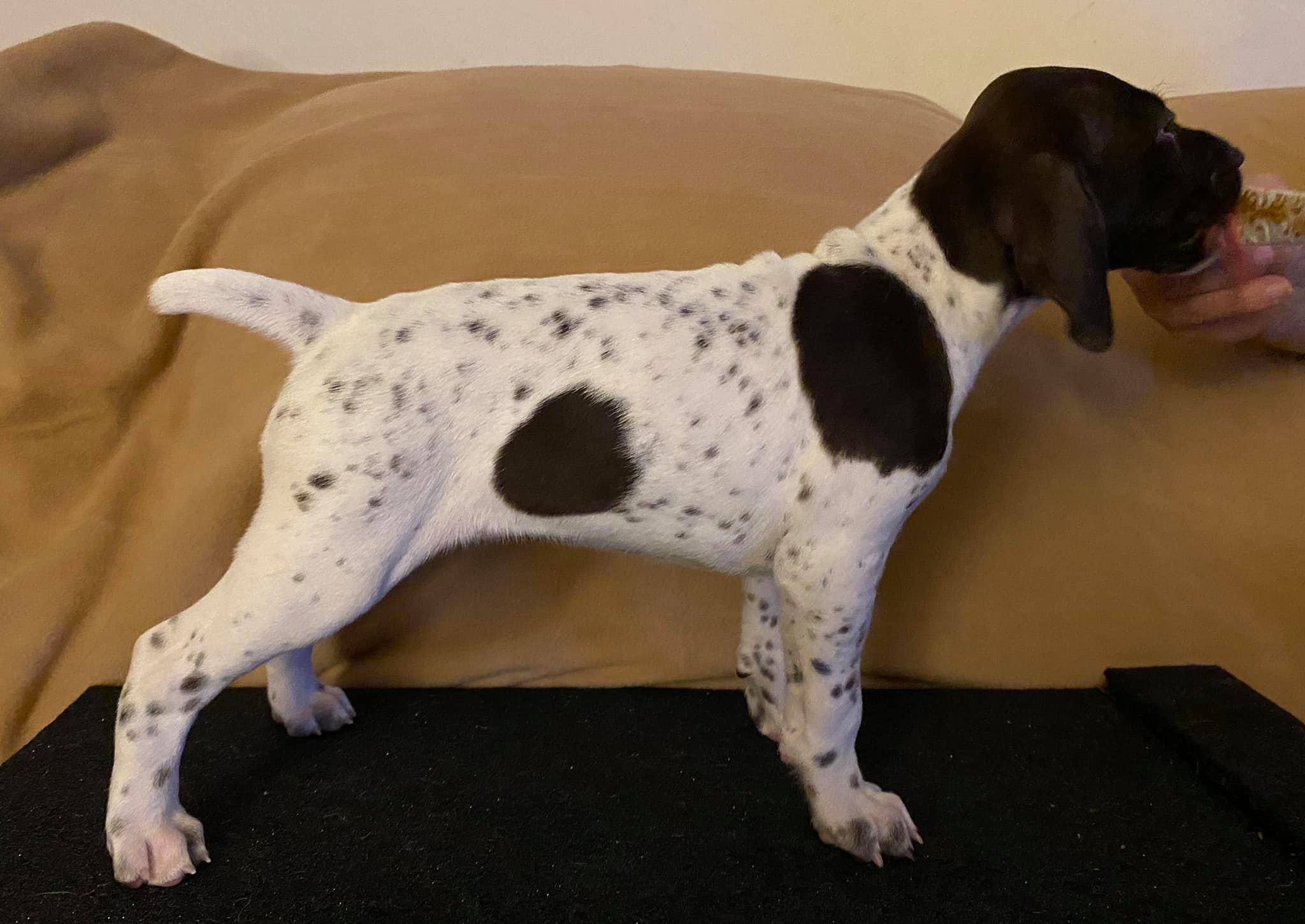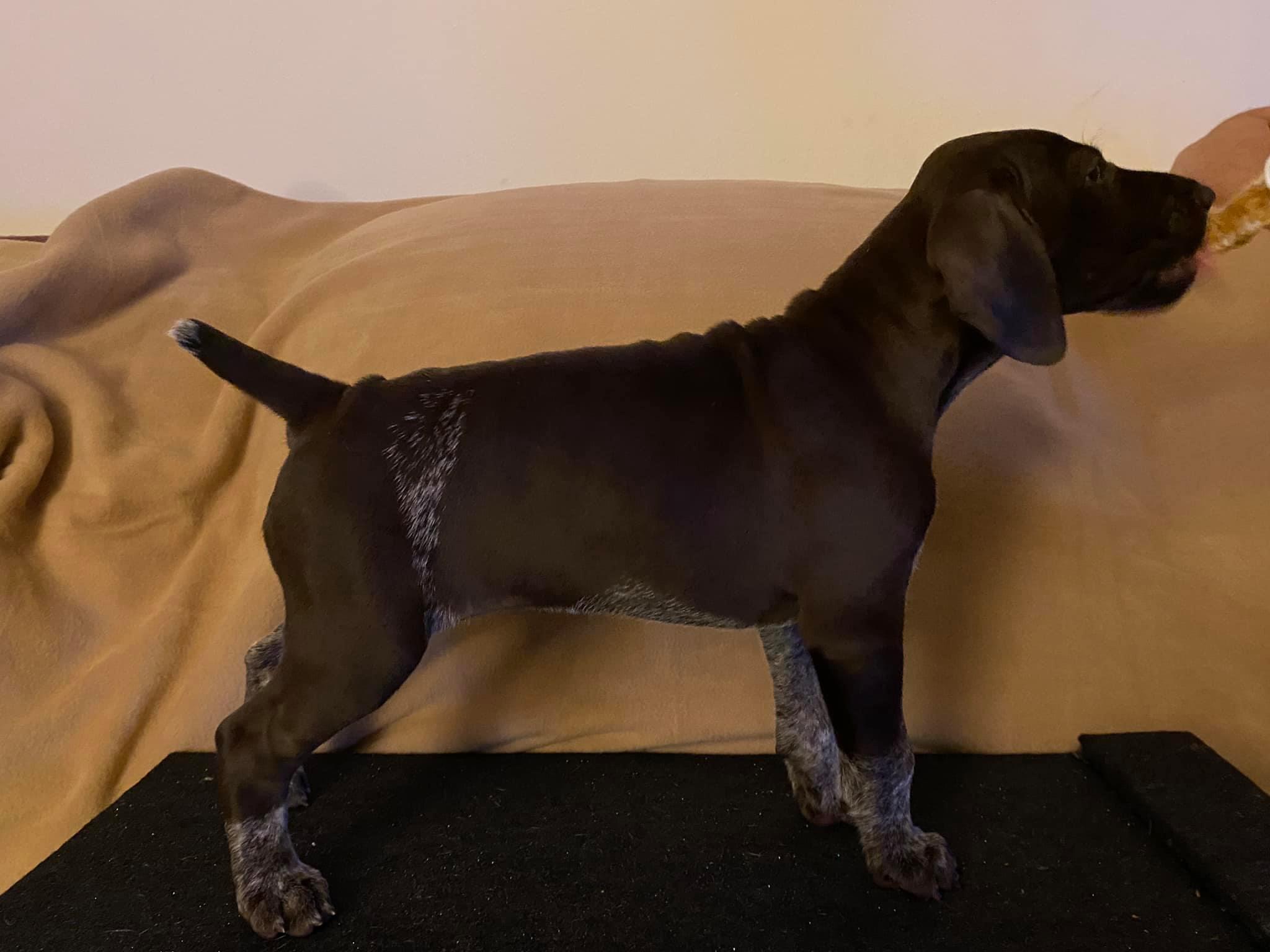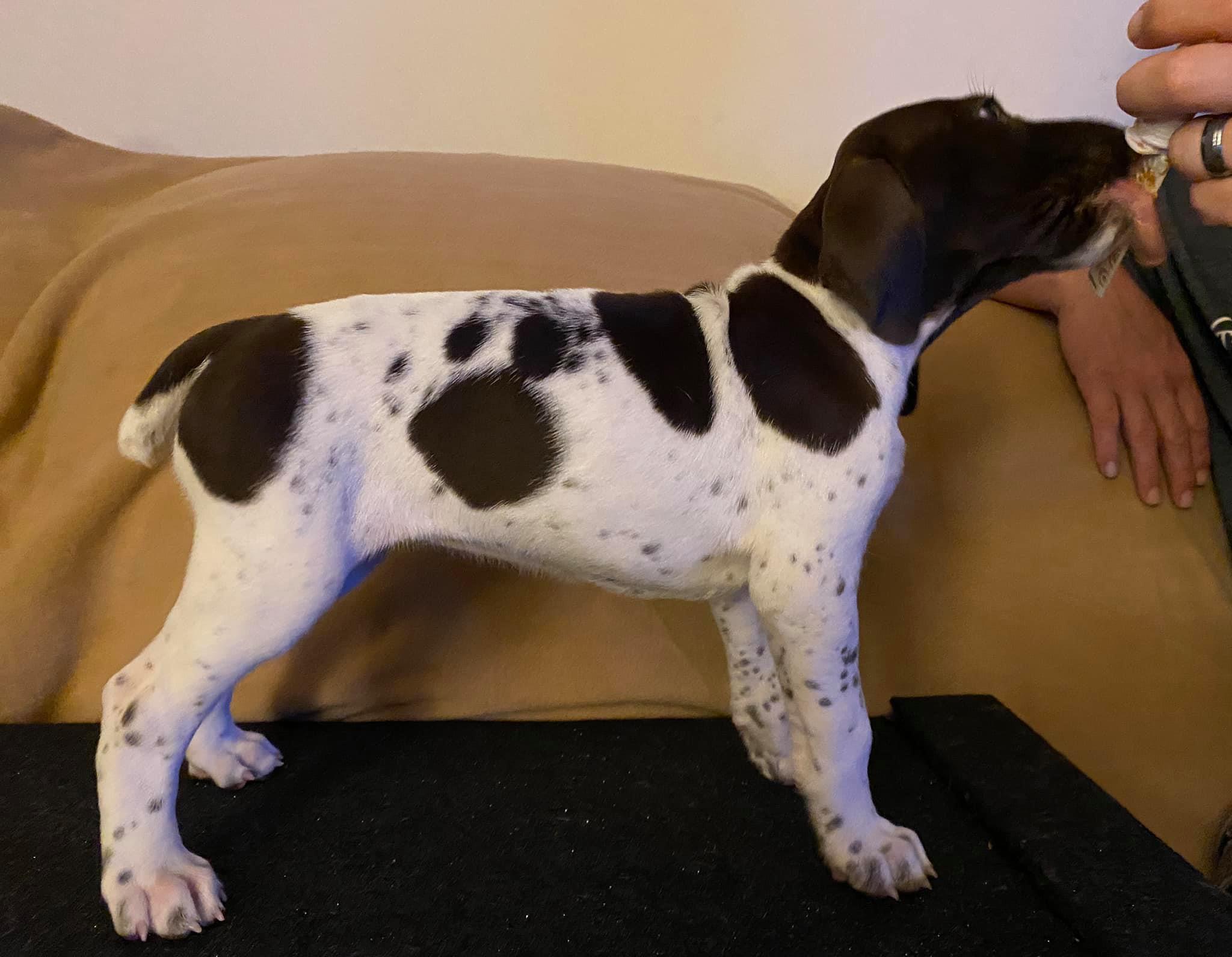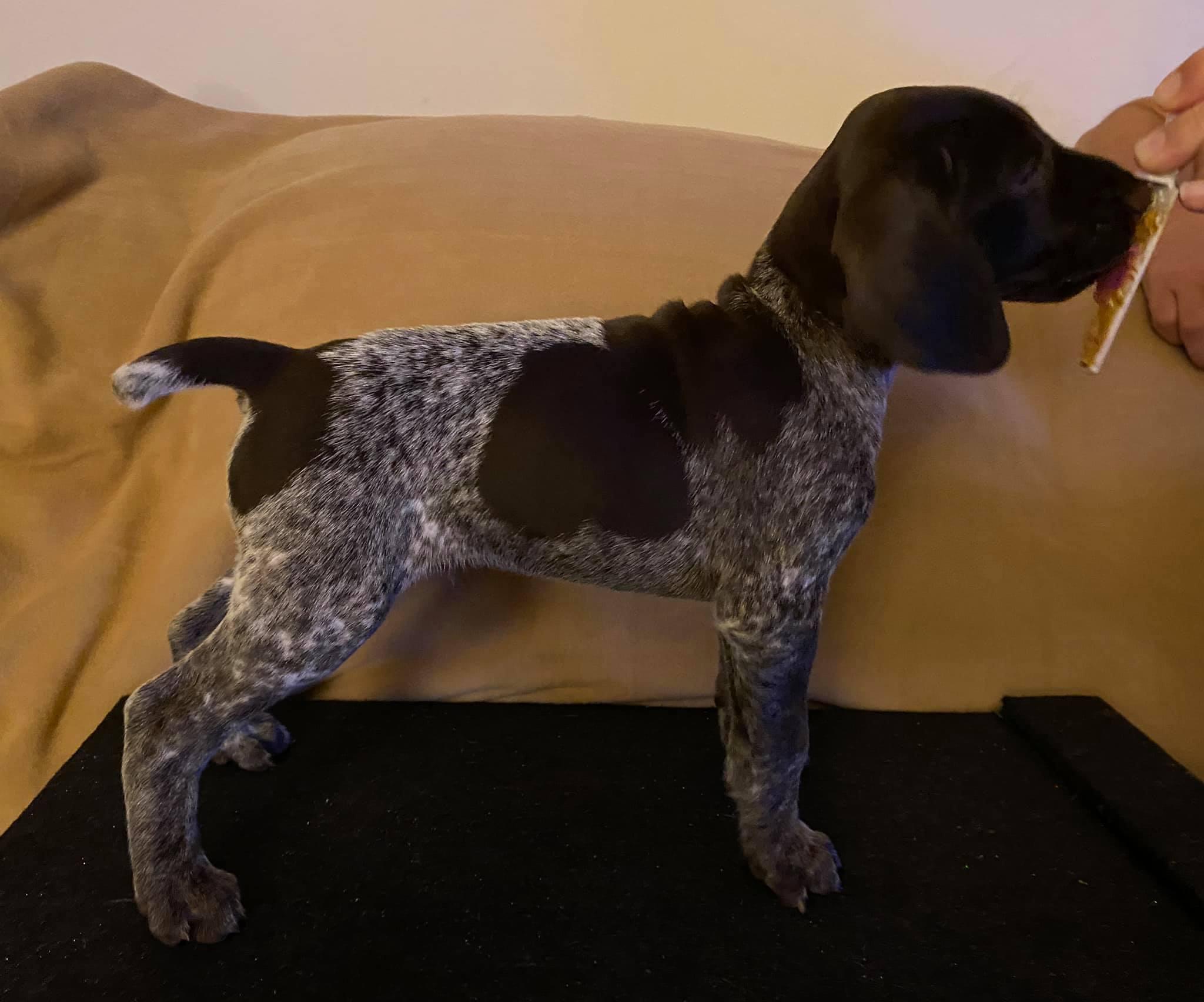 Lyric is a female German Shorthaired Pointer. Carefully selected as a great representative of her breed, Anne decided to make her part of their program. Anne has passed Good Dog’s screening process, which involved a review of their breeding practices, environment, and the mental and physical health of their dogs.