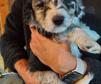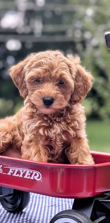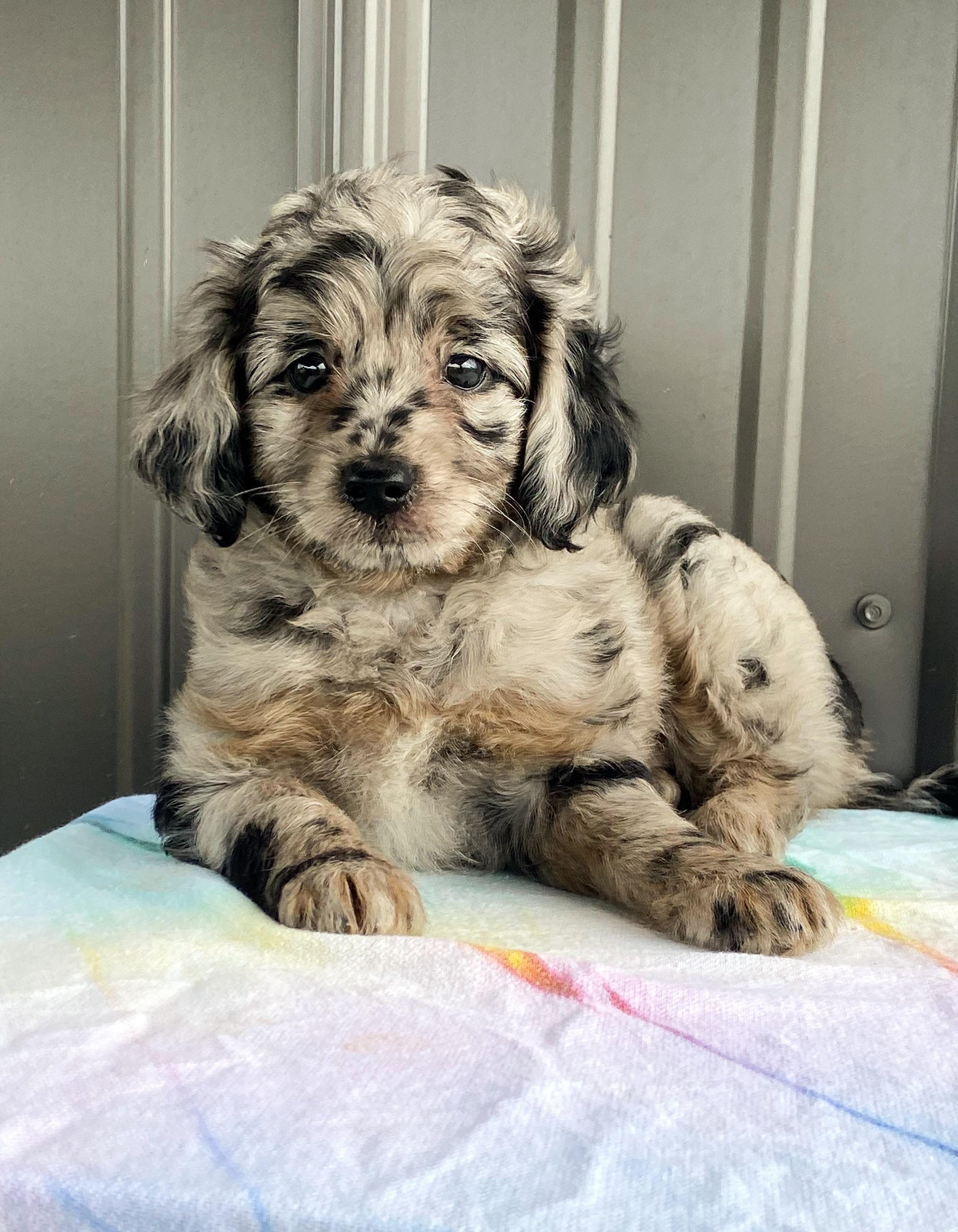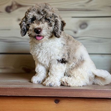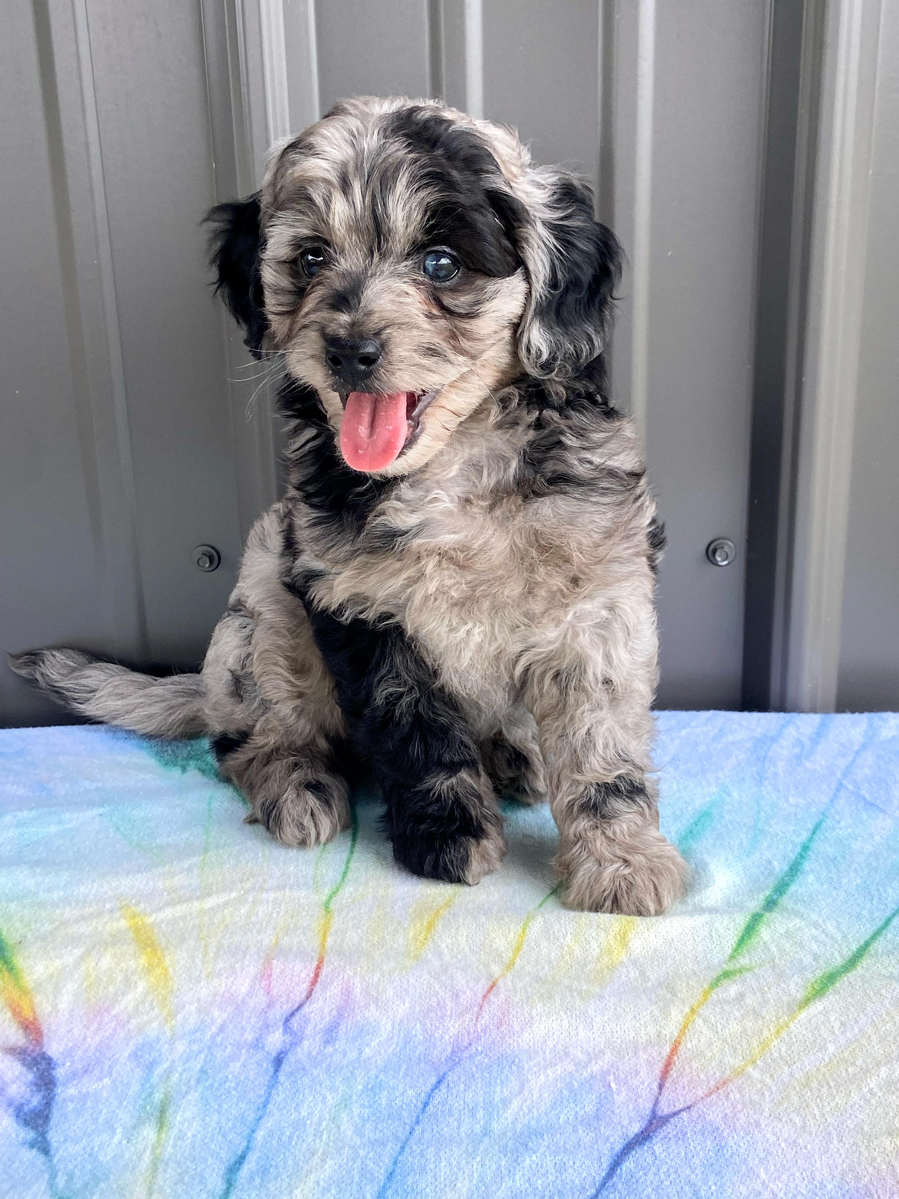 Our Poodle puppies include cream, red, and parti. Bernedoodle puppies include black and white, tri-color, and phantom. Australian Shepherd puppies include red merle, blue merle, and black tri-color. Cavapoo puppies include red, tri-color, sable, black and tan, and apricot. Cockapoo puppies include brown and tan and black and tan. Aussiedoodle puppies include red, blue merle, red merle, black and white, and black tri-color. Colors will vary depending on the parent dogs.