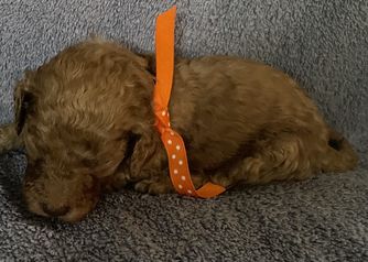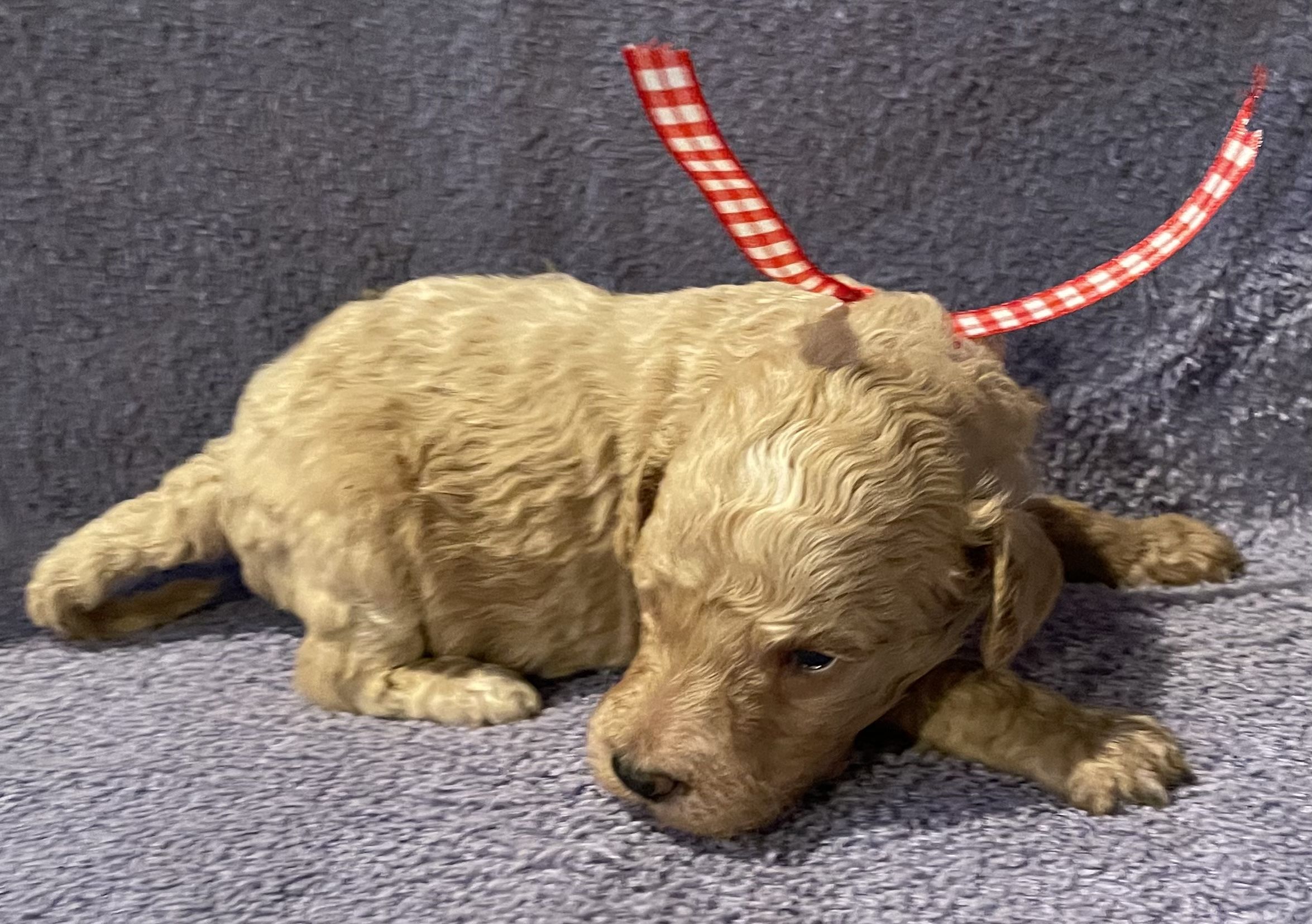 Girlie is a female Labradoodle. Carefully selected as a great representative of her breed, Nina decided to make her part of their program. Nina has passed Good Dog’s screening process, which involved a review of their breeding practices, environment, and the mental and physical health of their dogs.