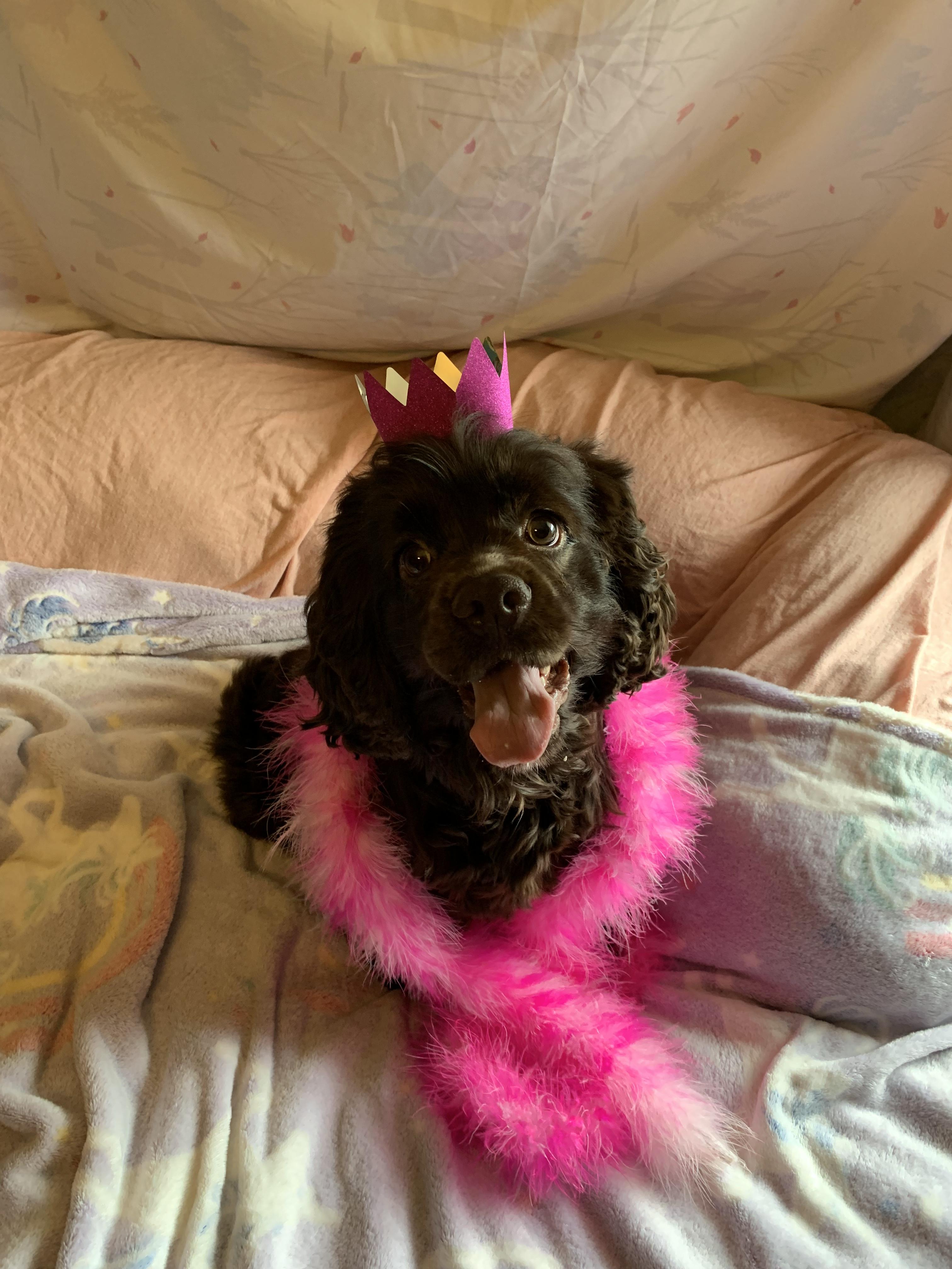 Grizzy is a female Cocker Spaniel. Carefully selected as a great representative of her breed, Sara decided to make her part of their program. Sara has passed Good Dog’s screening process, which involved a review of their breeding practices, environment, and the mental and physical health of their dogs.