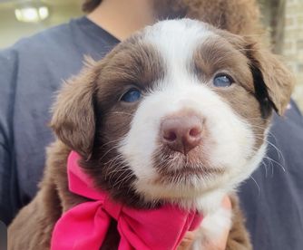 Our puppies include black & white, red tri-color, black tri, black, red merle, blue merle, and red. Colors will vary depending on the parent dogs.