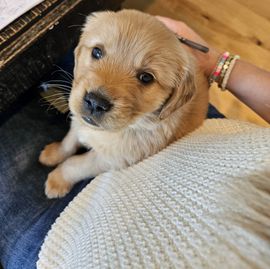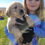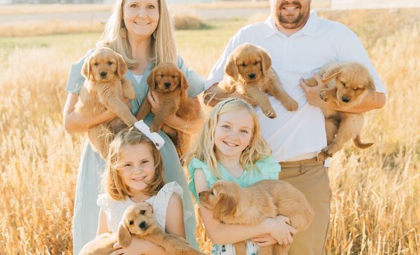 I'm Kiley K., the breeder behind SK Golden Retrievers located in Driggs, ID. We are a family of 4 and work together in our breeding program. Having dogs in our lives is such a blessing. We find so much fulfillment in providing that same companionship to other homes! The loyalty and loving disposition of golden retrievers are simply the best, and something we are passionate about! We put a great deal of effort into raising our litters to ensure our puppy families will have an easy transition with their new pup. We aim to breed calm tempered dark goldens (dark golden and red in color).