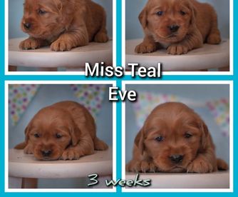 Junie is small and petite. She is a big sweetheart. Beautiful red color Genetically clear, ofa hips, eyes, elbows and cardiac.