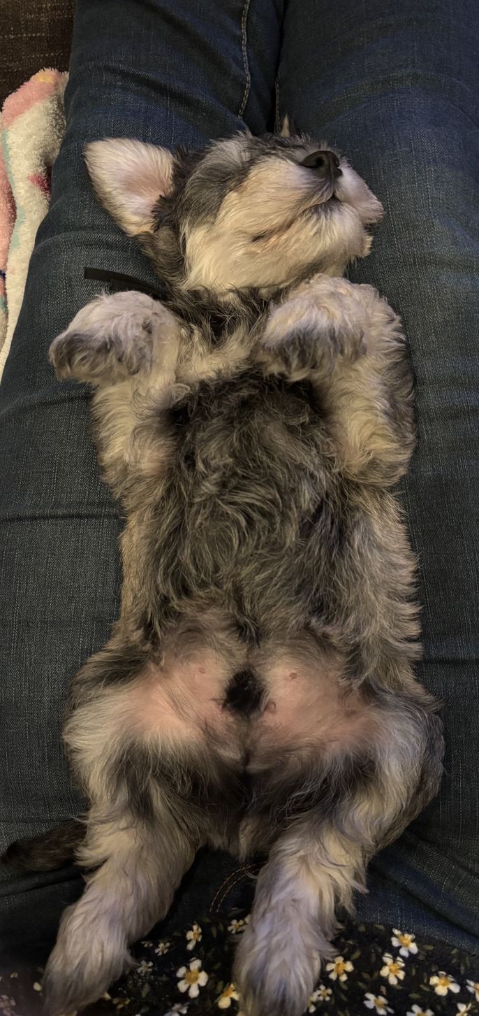 Our miniature schnauzers are our family. People can poke fun about being a backyard breeder, but we are the most loving and will not breed more than once a year. We will have time to properly care for all.