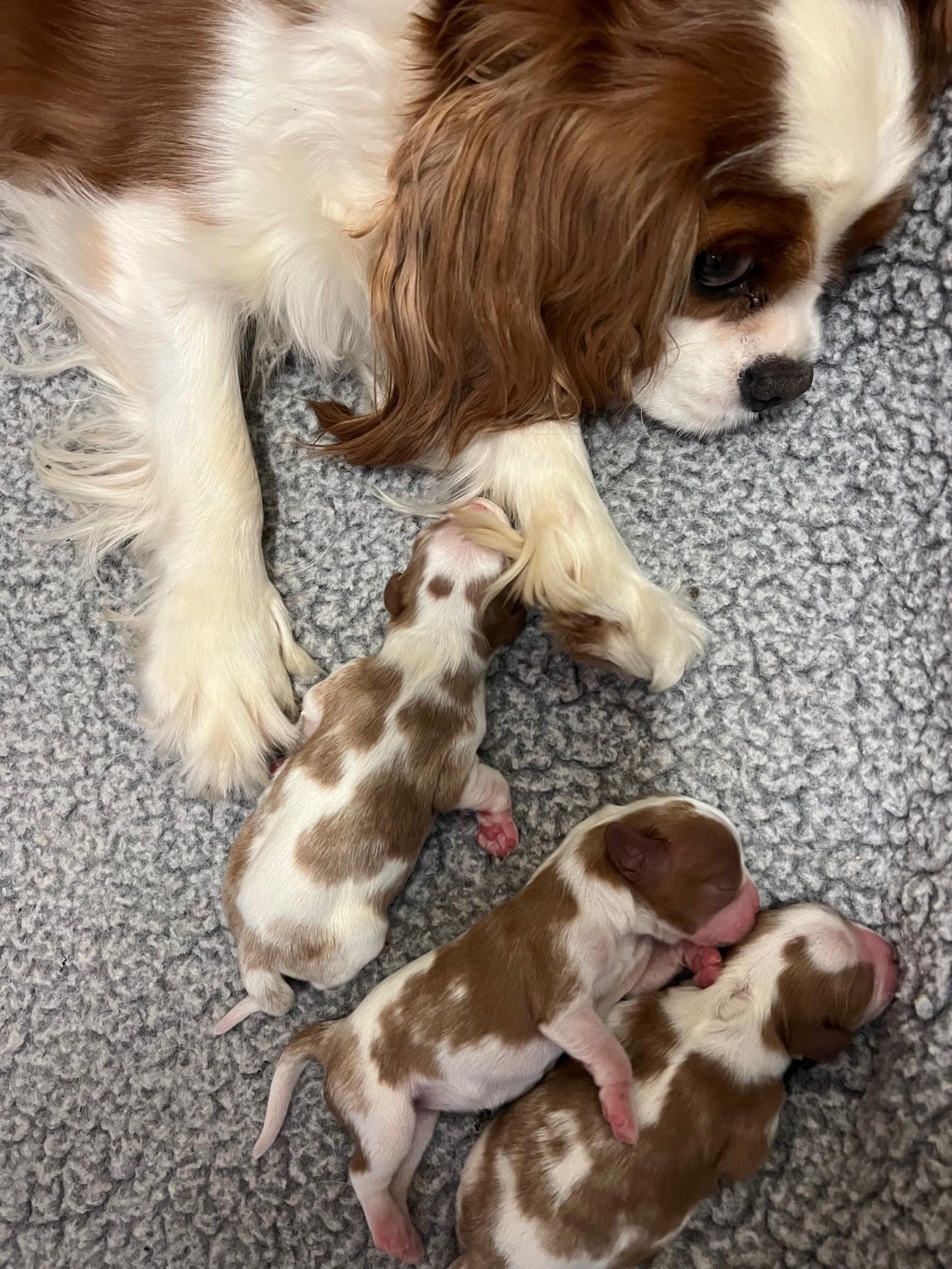 Our puppies include blenheim, ruby, black and tan, and tri-color. Colors will vary depending on the parent dogs.