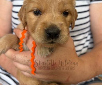 If you prefer more of a challenge, and do not want the perfect dog, I don't recommend Skarlotte Golden's. But if you want a good dog that's perfect from day one, that has great breeding, goodtemperament and is well socializedearly... This is the place. This was my first time buying a puppy so I took my time finding the right breeder and I couldn't be happier with my choice. Particularly with the dog. He's been perfect from that first ride home. The process of getting him eased all of the anxieties I had as a 1st time buyer. She will get to know you, your wants and lifestyle a little bit so that when match day come you end up with the best possible result. I can only speak for myself, but I don't think I could have found a better breeder and definitely could not have found a better dog. Thank you Kathryn for helping me complete my home.