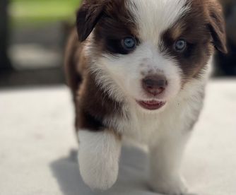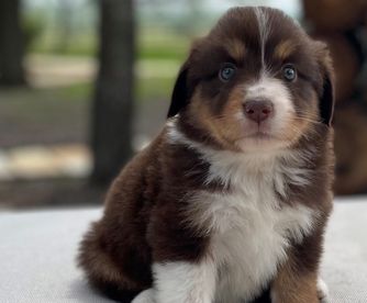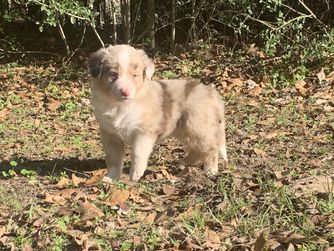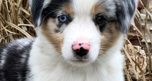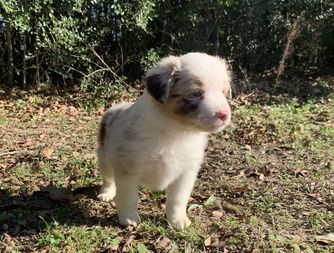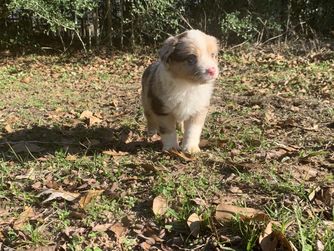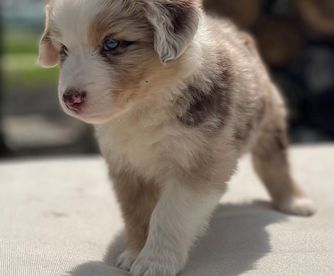 Our Miniature Australian Shepherd puppies are blue merle. Australian Shepherd puppies include red merle and blue merle. Colors will vary depending on the parent dogs.