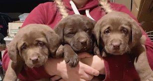Our puppies include black, chocolate, and yellow. Colors will vary depending on the parent dogs.
