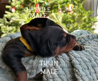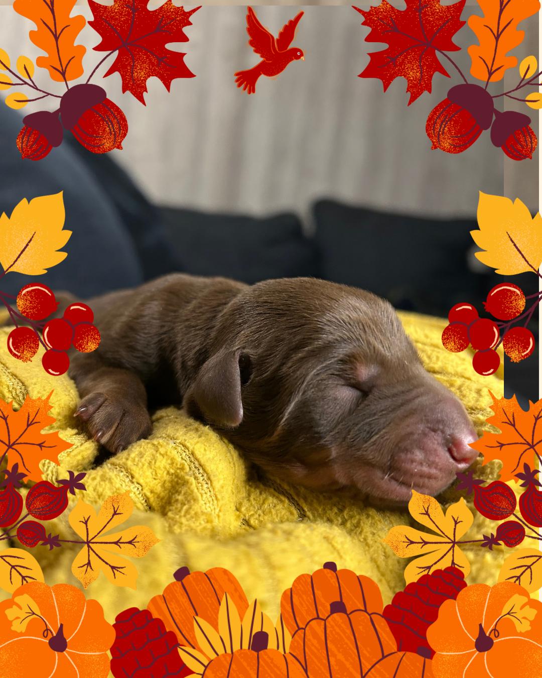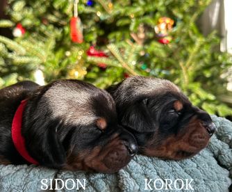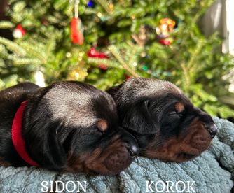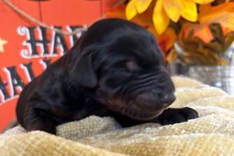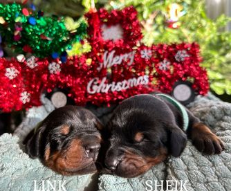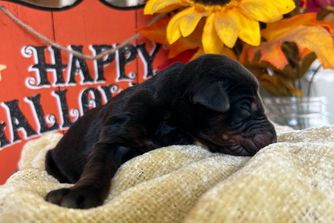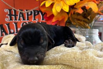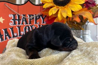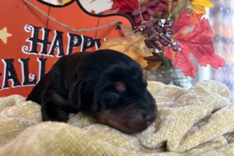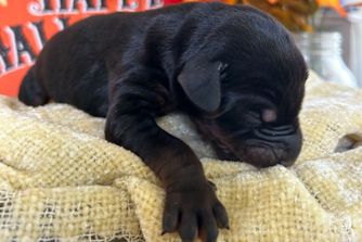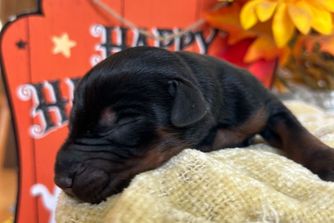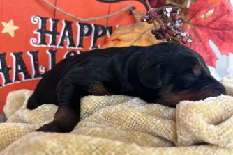 Our puppies are black and rust. Colors will vary depending on the parent dogs.