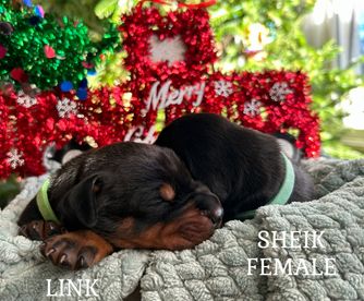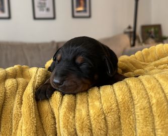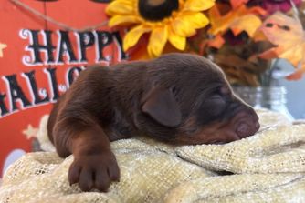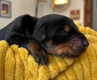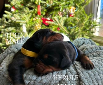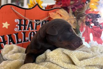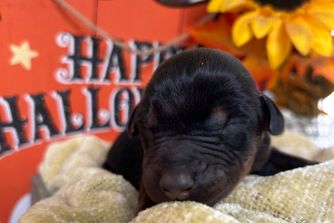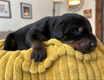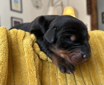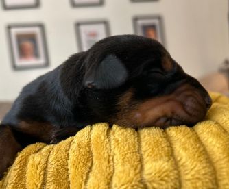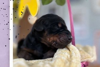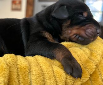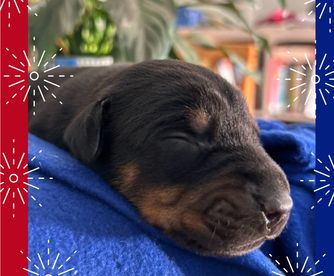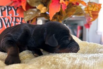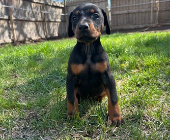 Sara is a great breeder and was knowledgeable on questions that I had! She was quick to respond and would always send picture of my puppy whenever I requested a photo. Pick-up of the puppy was simple and straightforward. At the time of writing this review, I have had my puppy for about two weeks and she has been great! Sara did a great job raising a healthy puppy. Would recommend to anyone looking for a Doberman!