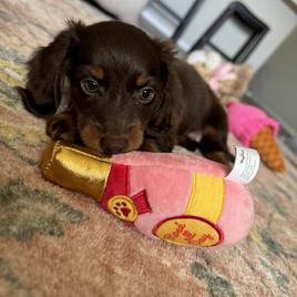 We recently purchased a dapple dachshund puppy “Gus” from Skyview Doxie Ranch and couldn’t be happier! He’s settled into our home seamlessly and is bringing so much joy with his playful personality and the most cuddly puppy.