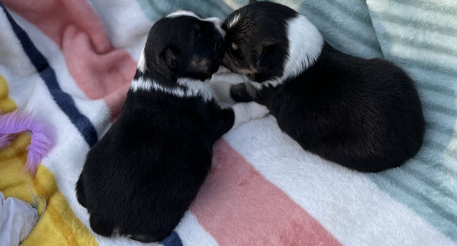 Our puppies include black and white and black and tan. Colors will vary depending on the parent dogs.