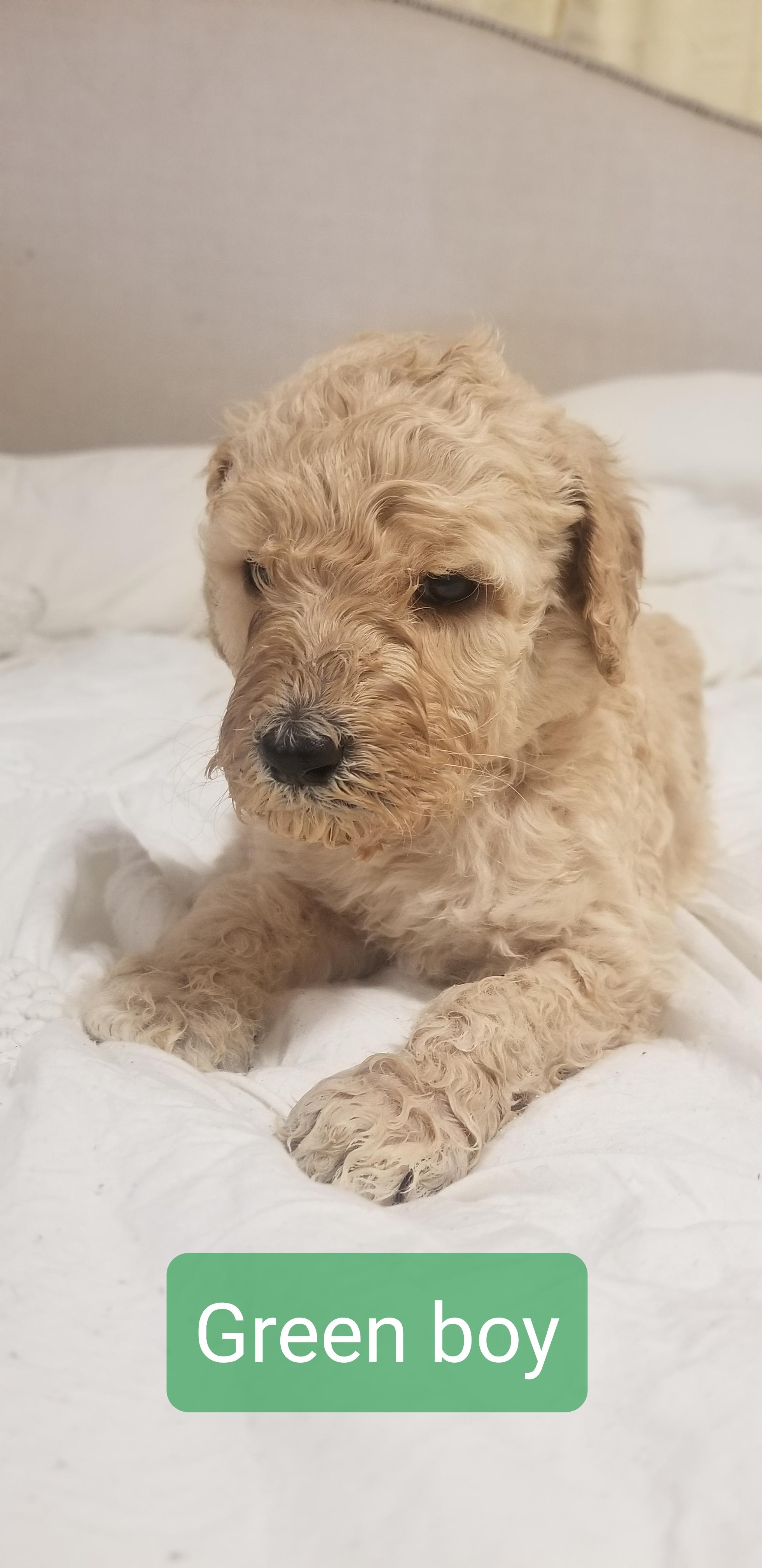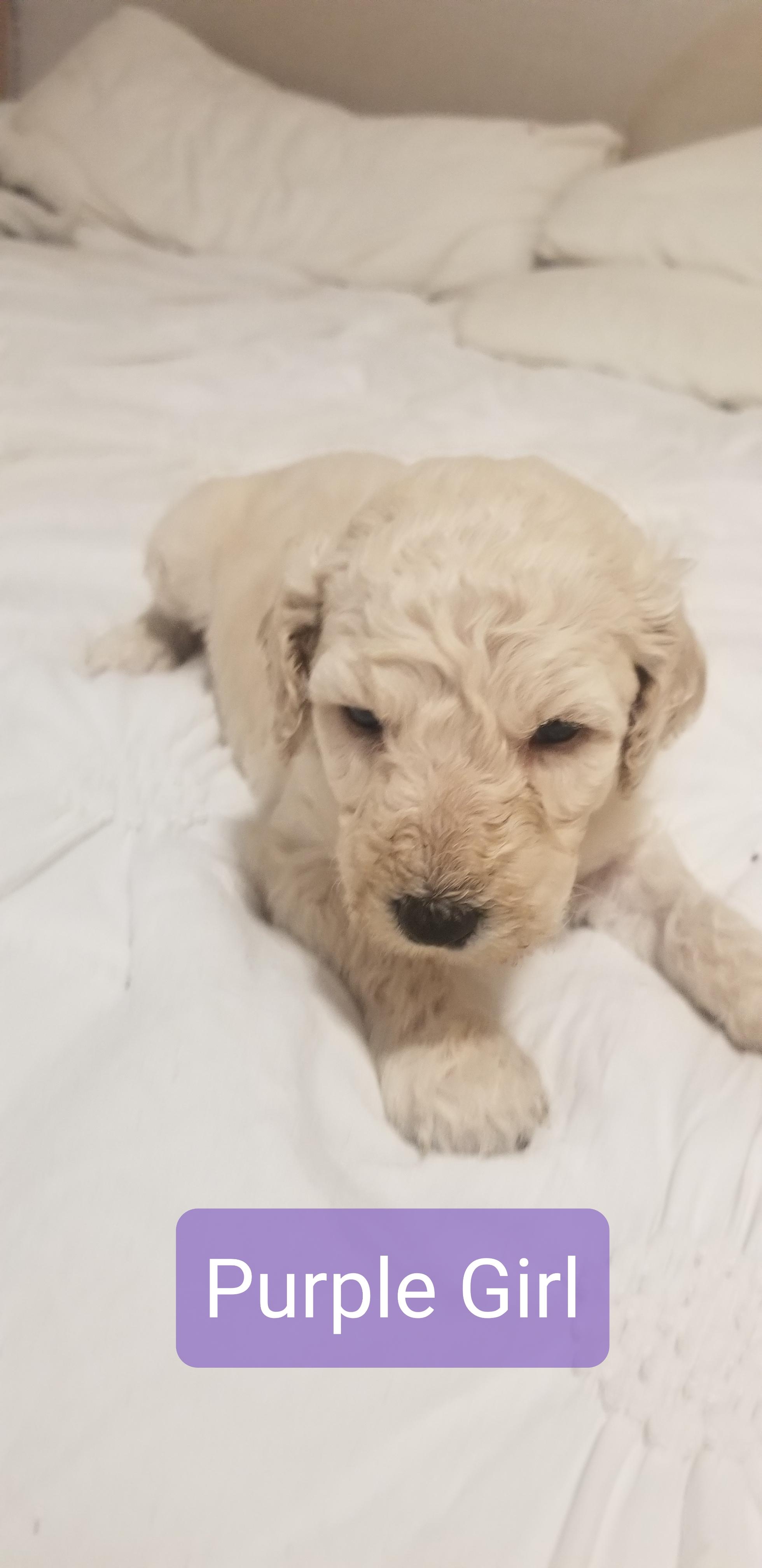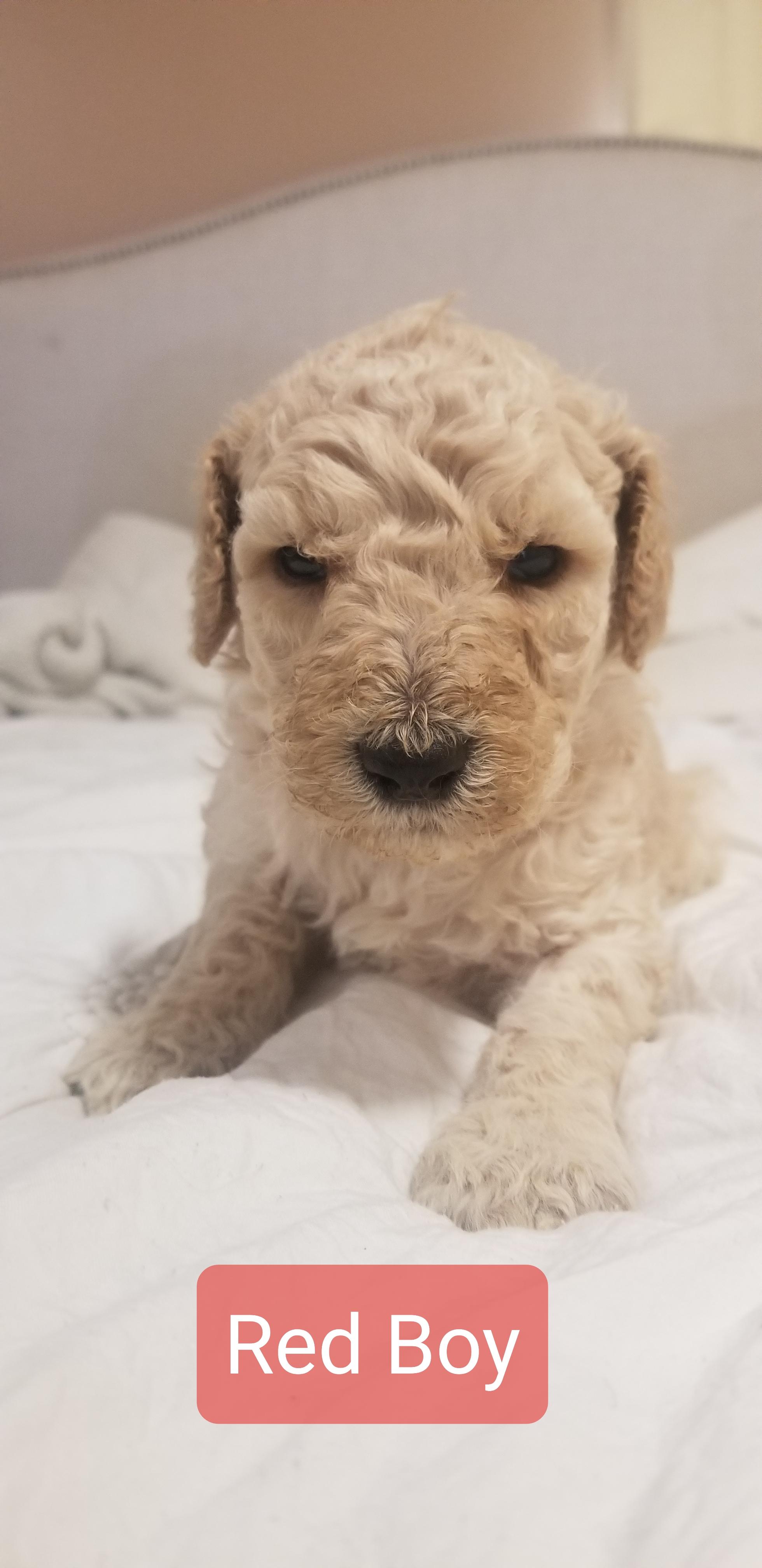 So far the puppies coats appear to be apricot, with a couple females being cream.