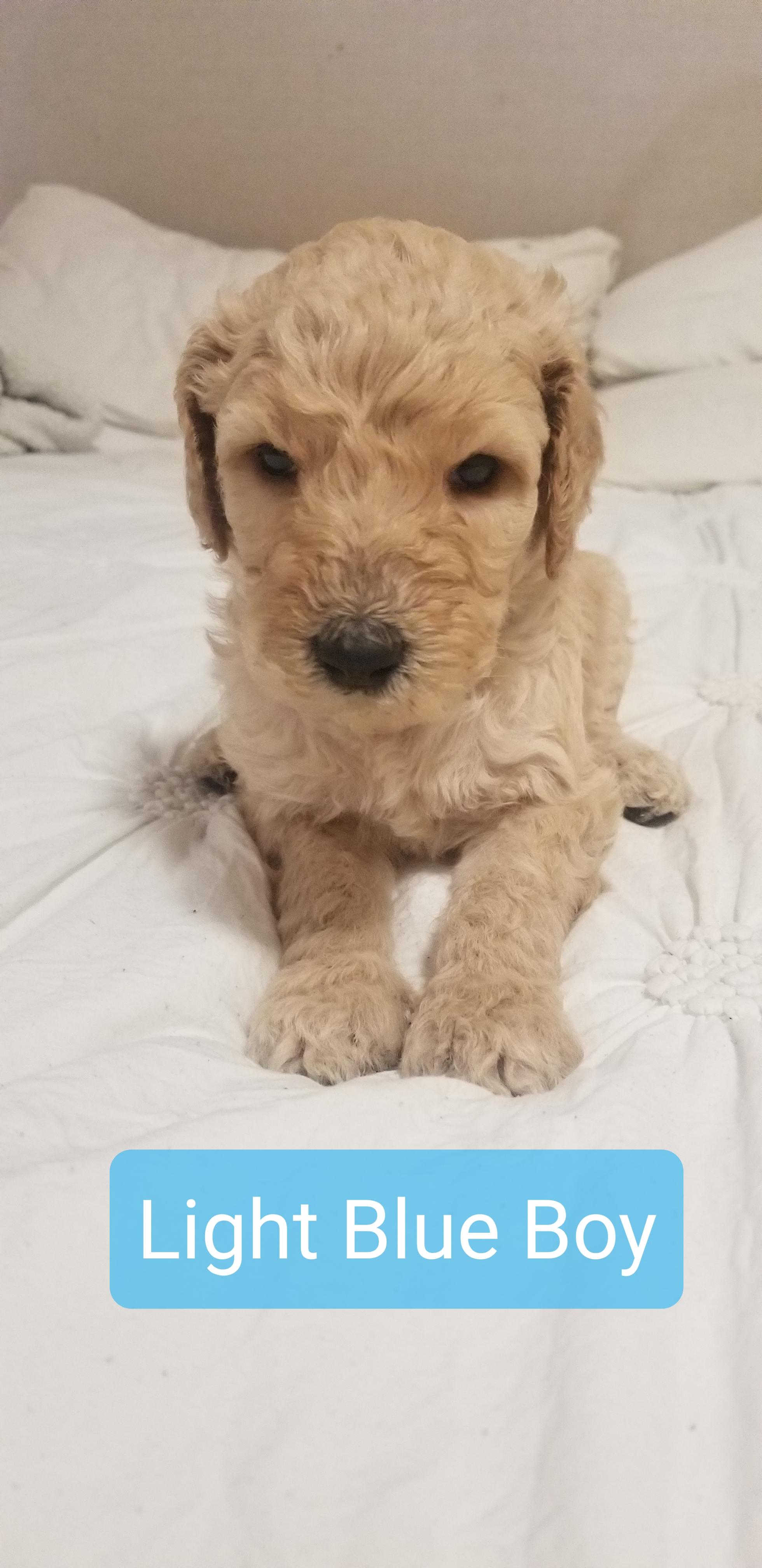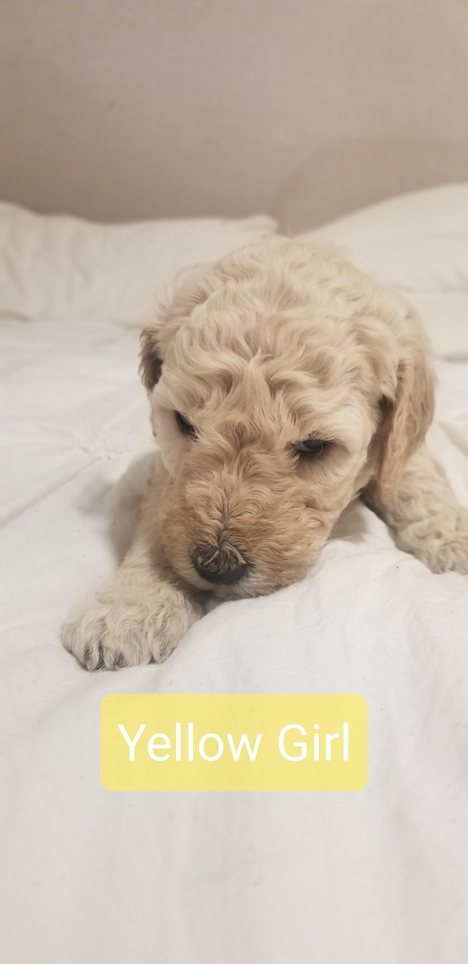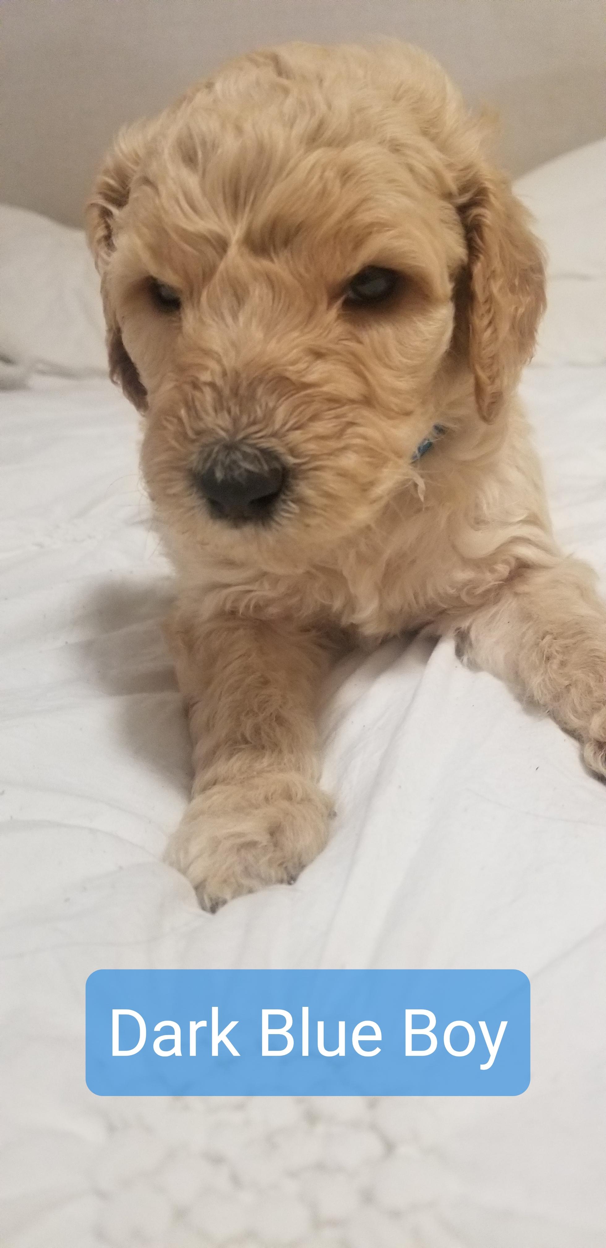 So far the puppies coats appear to be apricot, with a couple females being cream.
