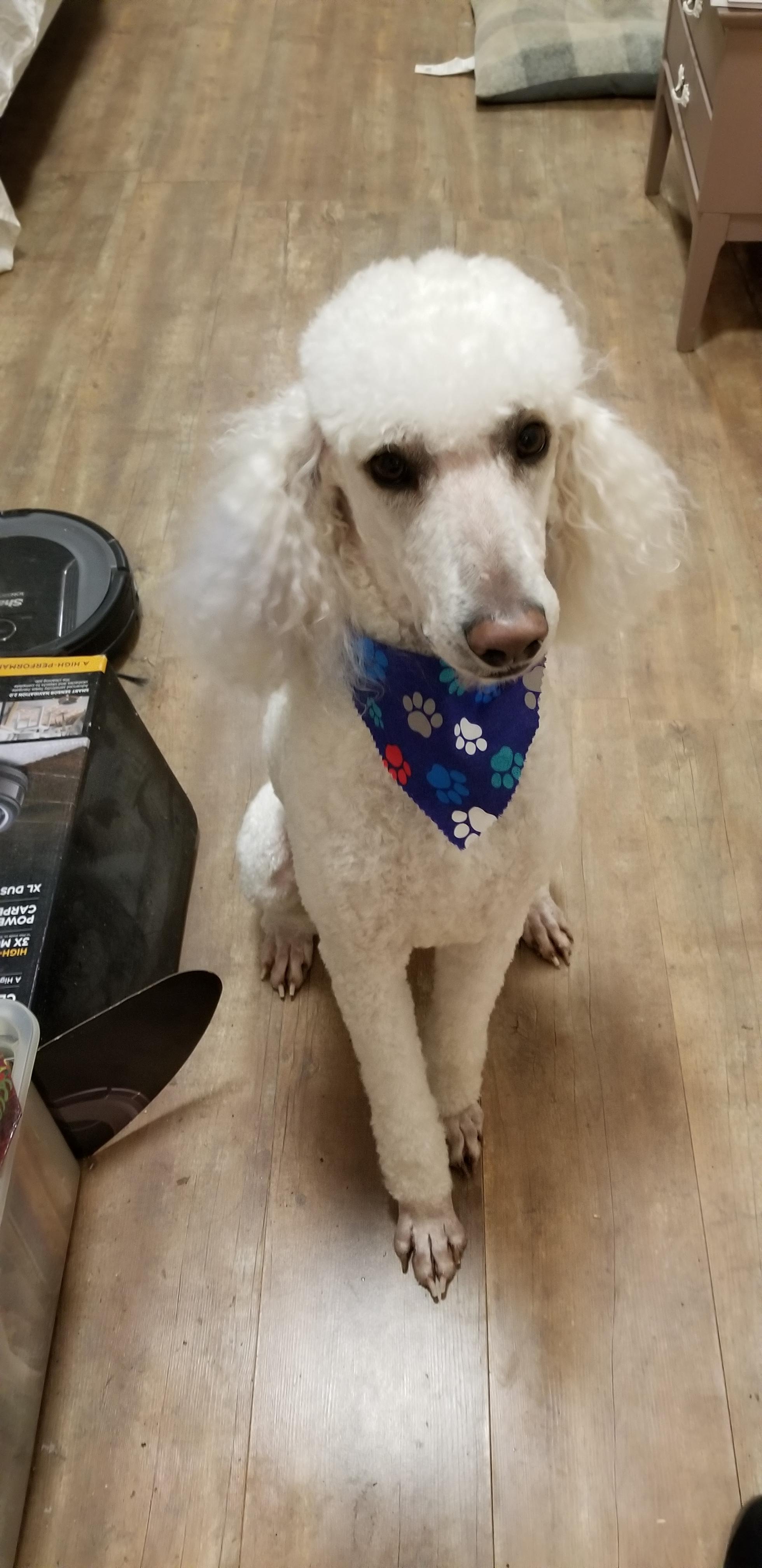 Reggie is a male Poodle. Carefully selected as a great representative of his breed, Sarah decided to make him part of their program. Sarah has passed Good Dog’s screening process, which involved a review of their breeding practices, environment, and the mental and physical health of their dogs.
