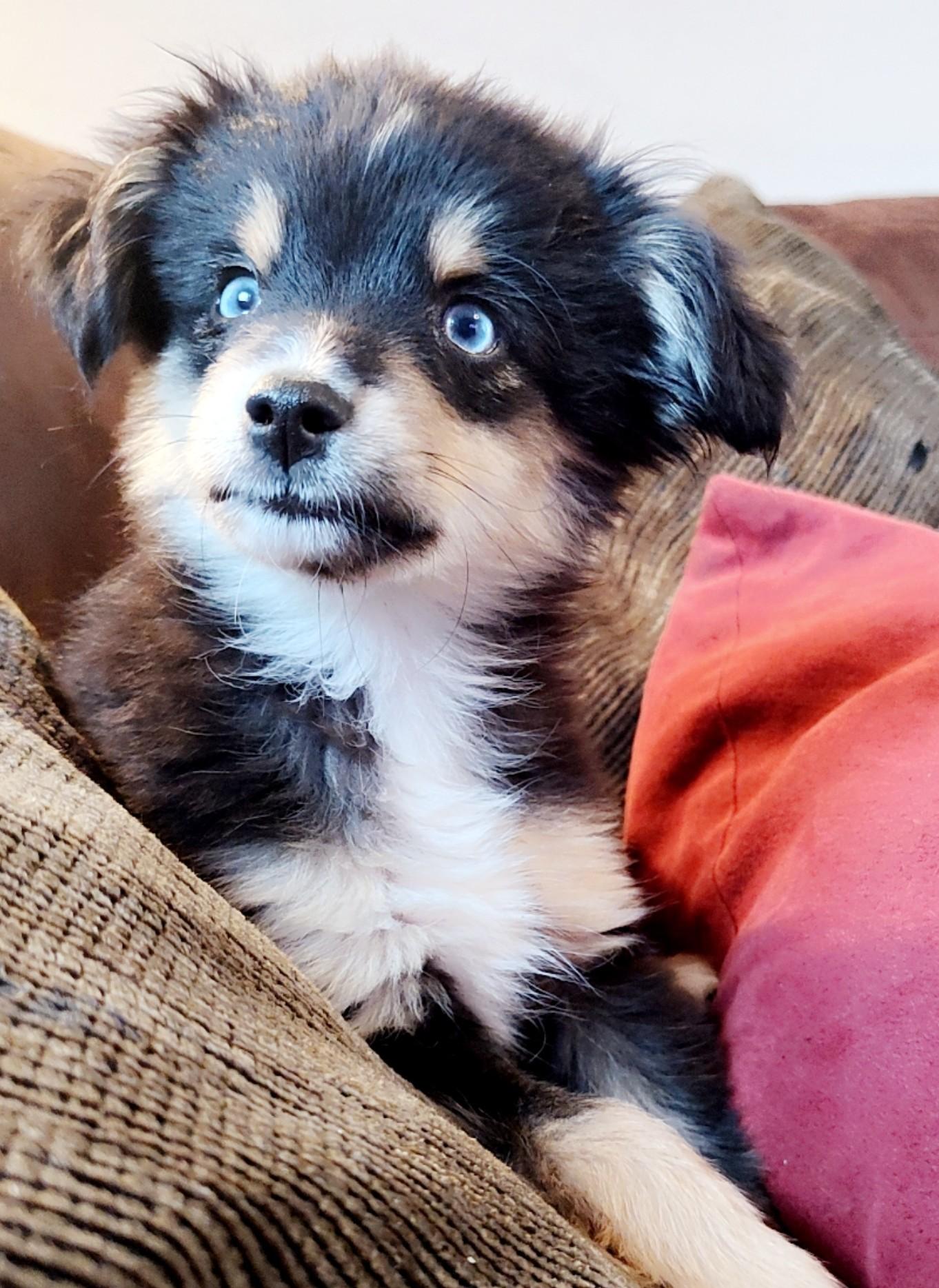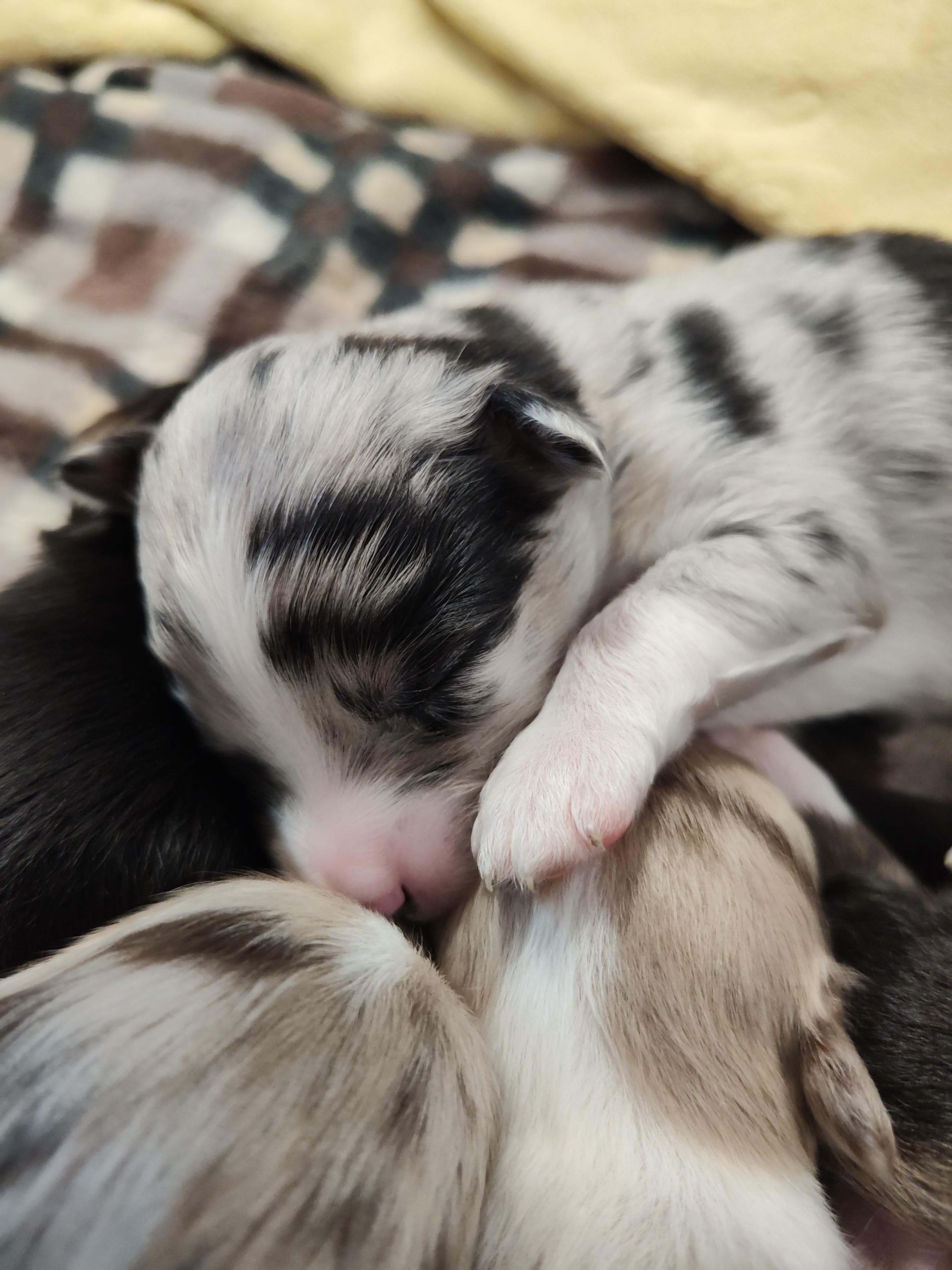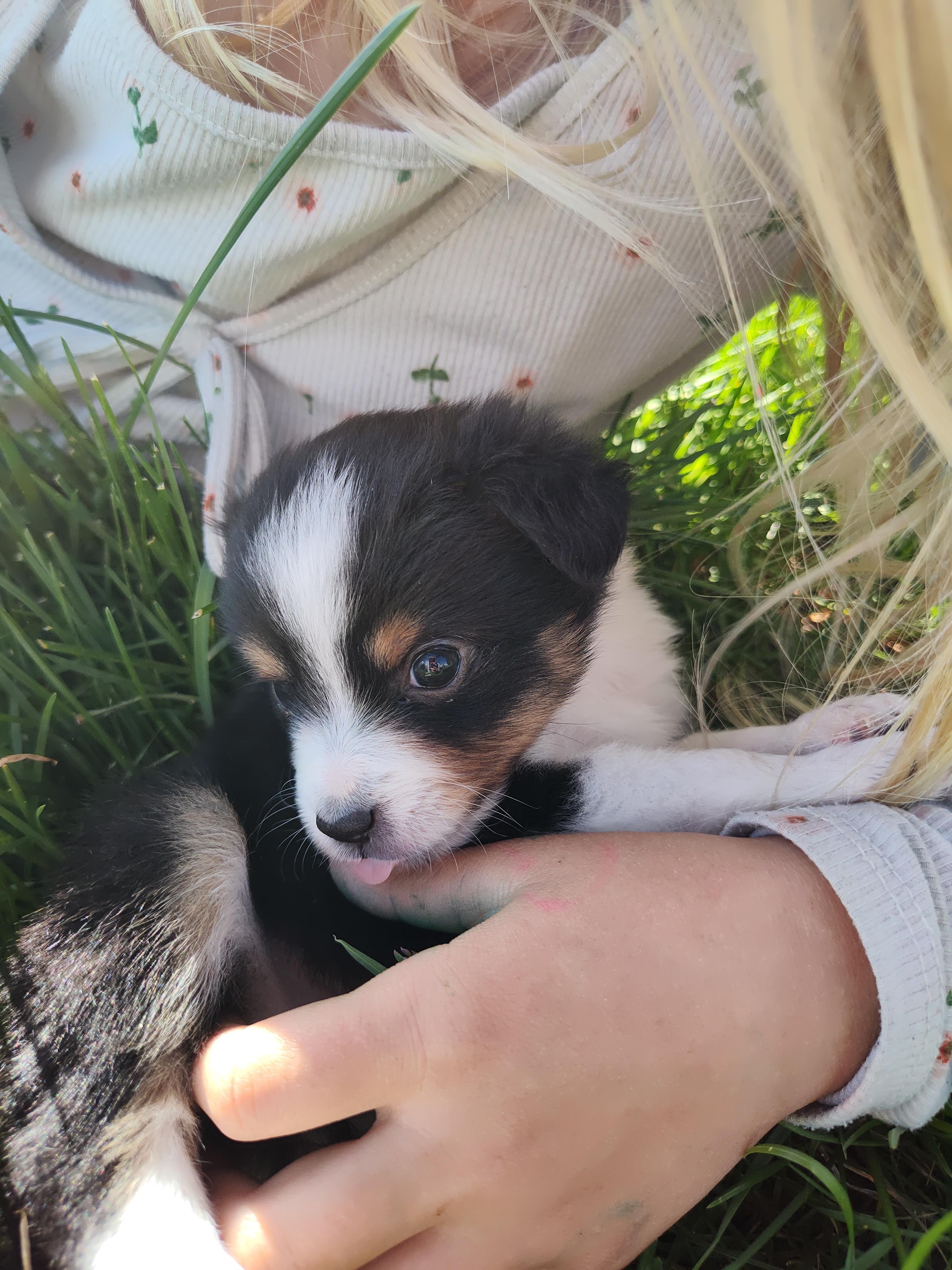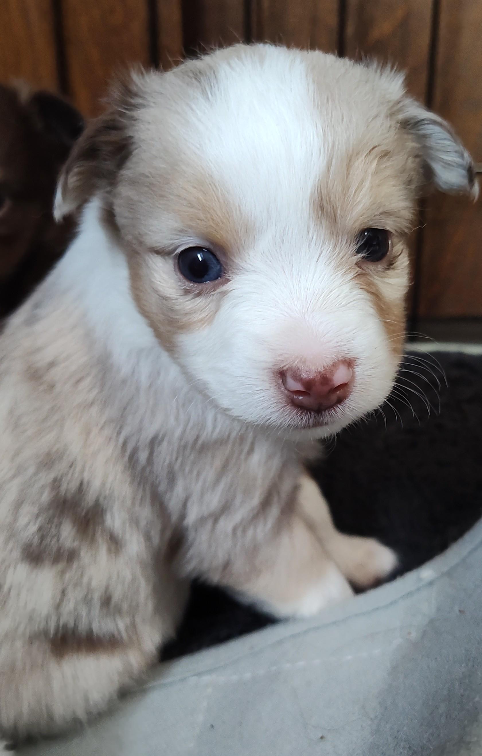 Our puppies include black tri, blue merle, red merle, and red tri. Colors will vary depending on the parent dogs.