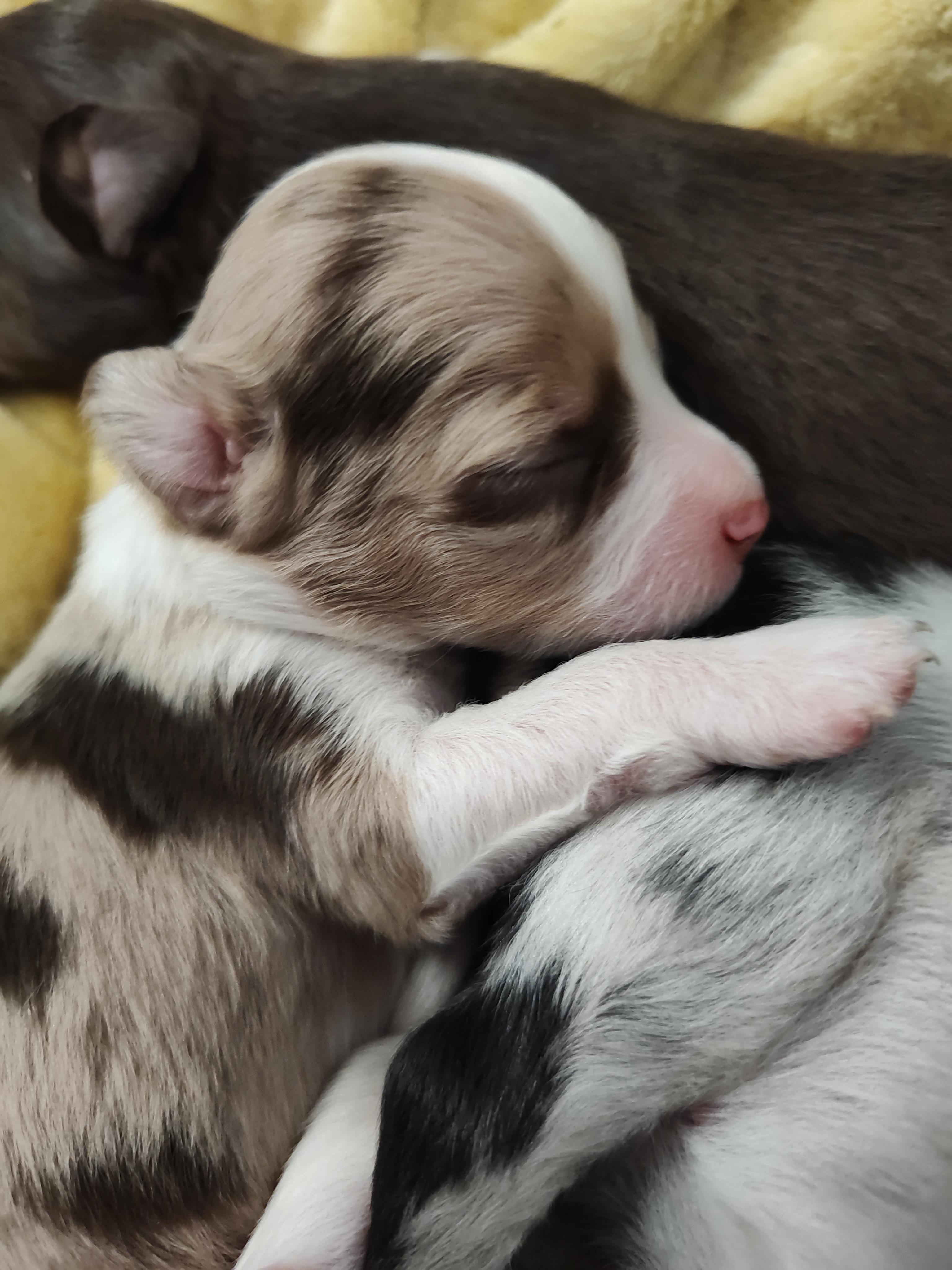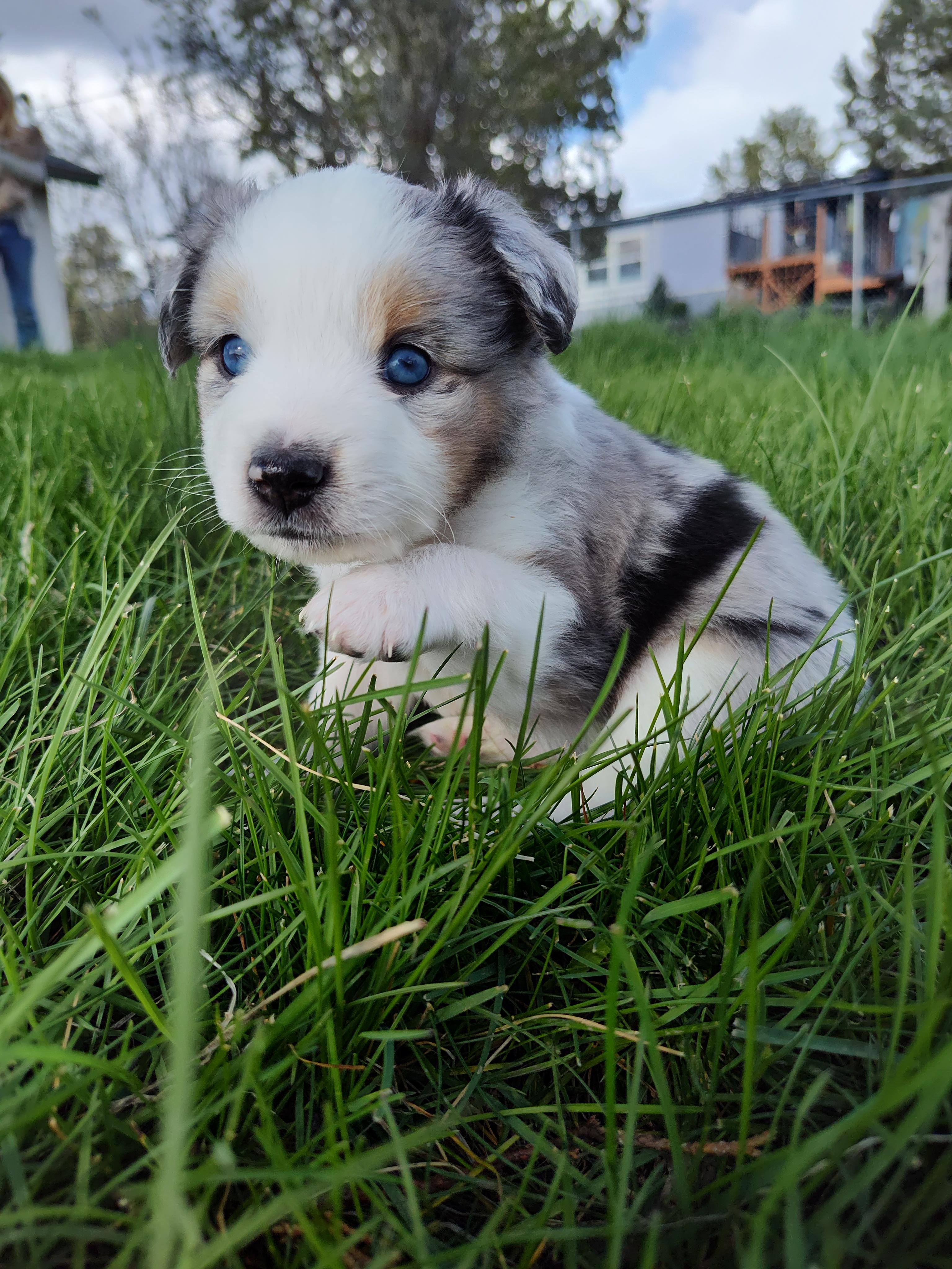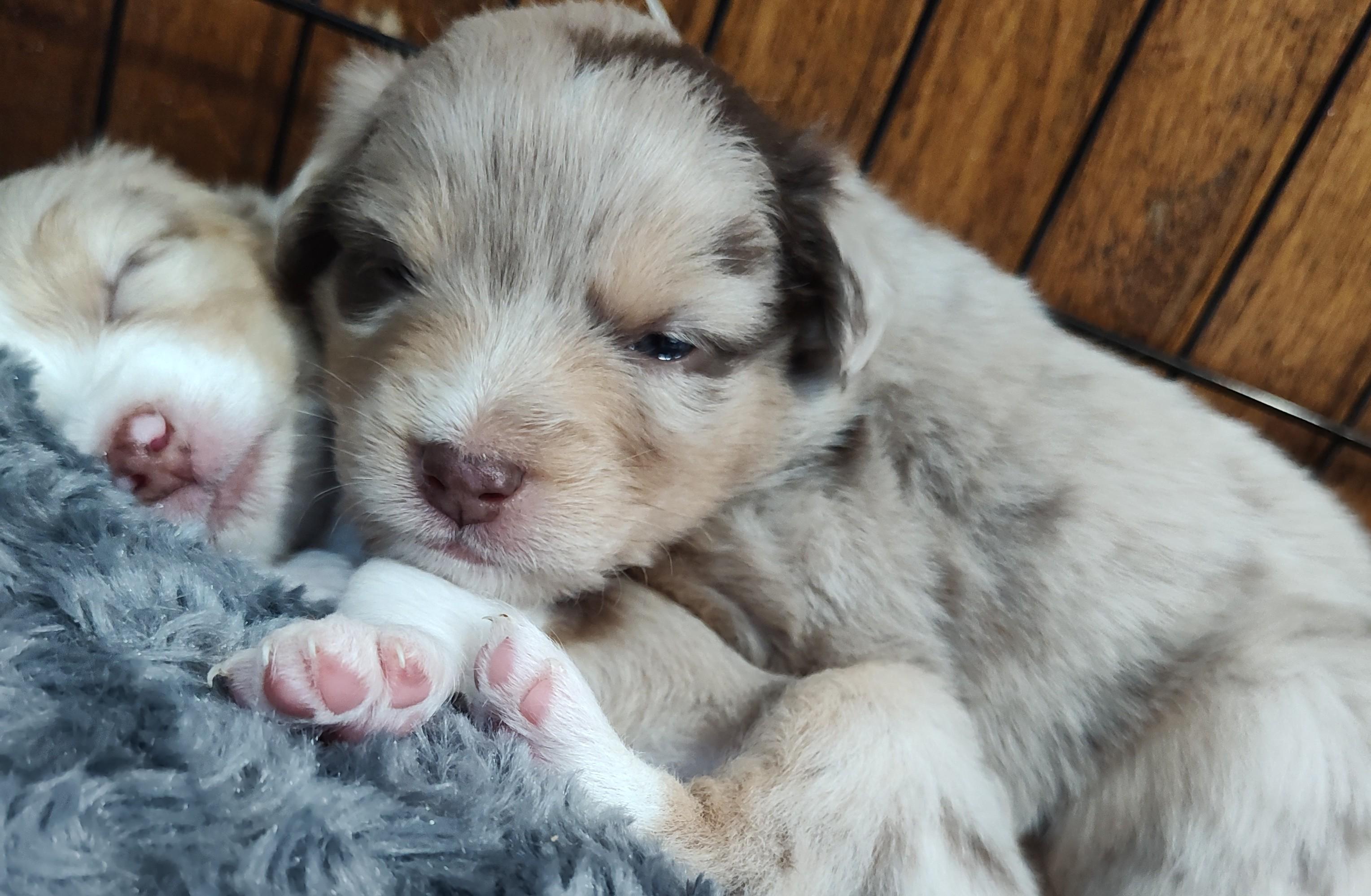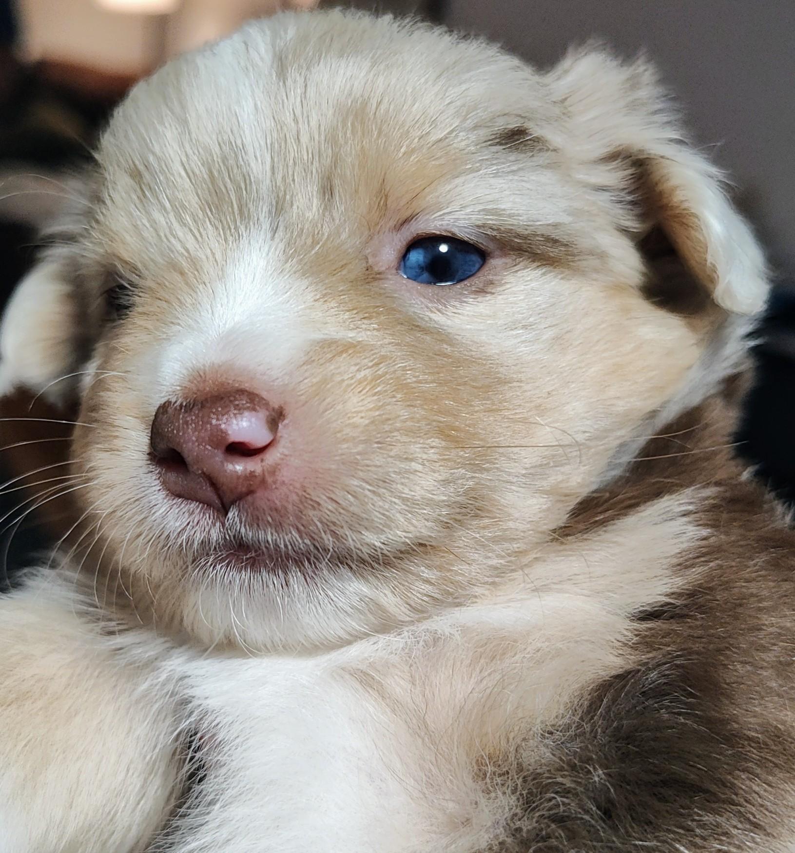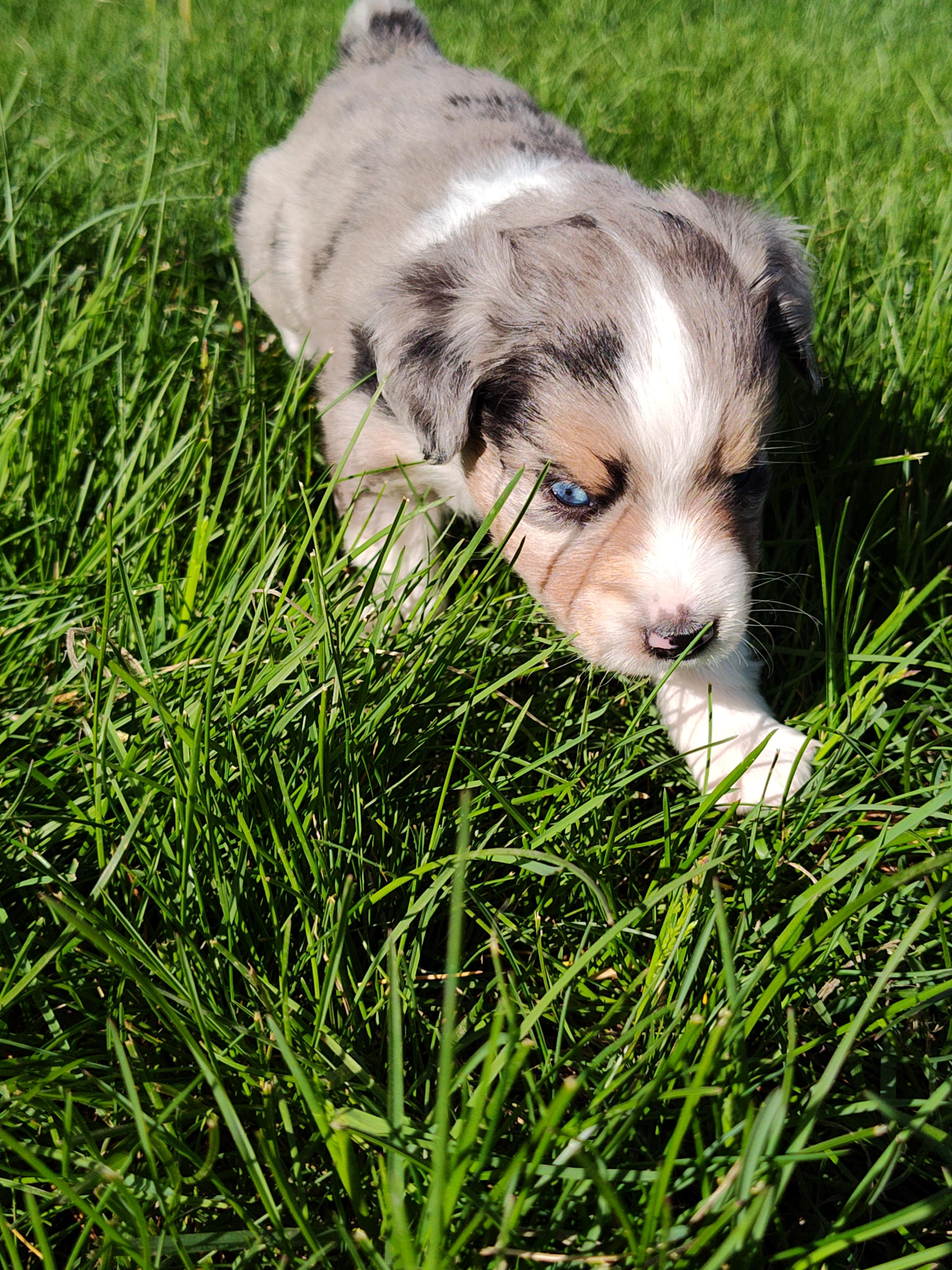 Our puppies include black tri, blue merle, red merle, and red tri. Colors will vary depending on the parent dogs.