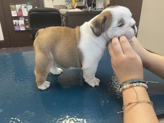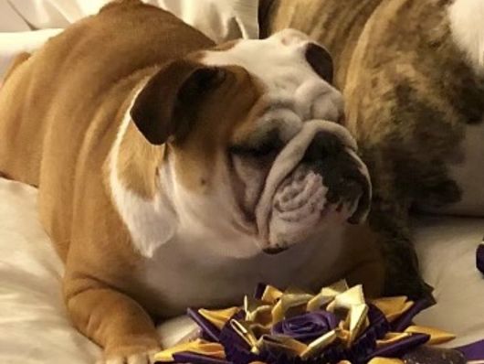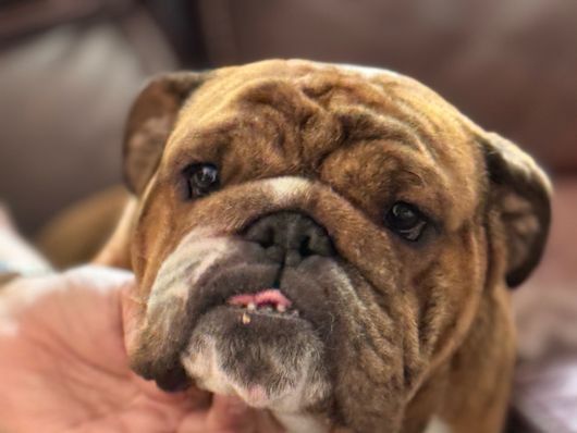 Sheldon is a male Bulldog. Carefully selected as a great representative of his breed, Shirley decided to make him part of their program. Shirley has passed Good Dog’s screening process, which involved a review of their breeding practices, environment, and the mental and physical health of their dogs.