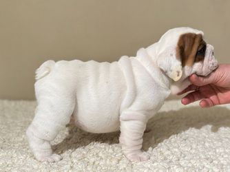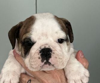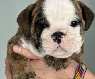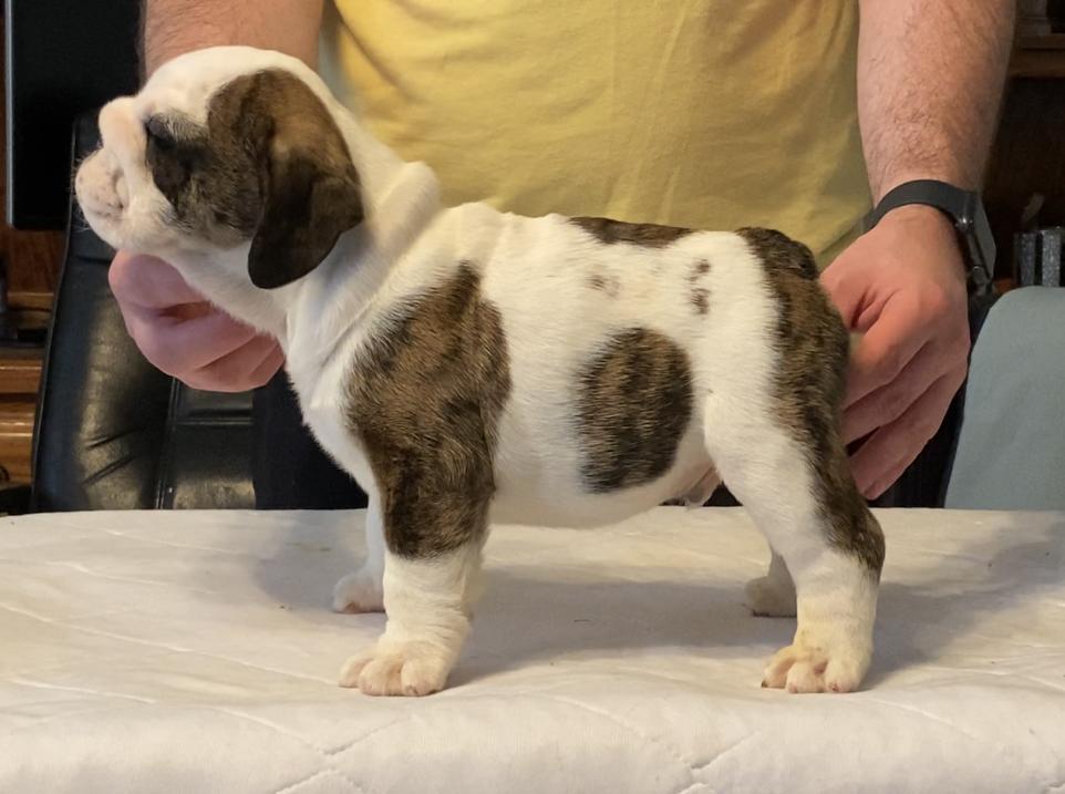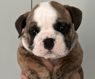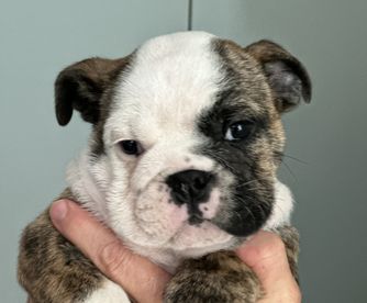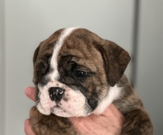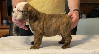 Sarah is a female Bulldog. Carefully selected as a great representative of her breed, Shirley decided to make her part of their program. Shirley has passed Good Dog’s screening process, which involved a review of their breeding practices, environment, and the mental and physical health of their dogs.