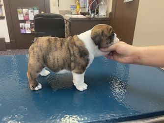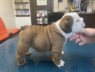 Teddie is a male Bulldog. Carefully selected as a great representative of his breed, Shirley decided to make him part of their program. Shirley has passed Good Dog’s screening process, which involved a review of their breeding practices, environment, and the mental and physical health of their dogs.