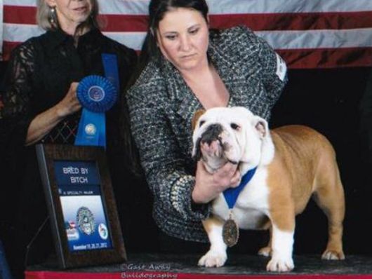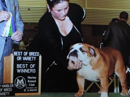 I'm Shirley S., the breeder behind Slaterpryce Bulldogs located in Uniontown, OH. I have been breeding and showing bulldogs for a few years now. I'm a "Breeder of Merit" and a "BCA Hall of Fame Producer." I actively show my dogs all over the country. I’m a member of the Bulldog Club of America and several other bulldog clubs.