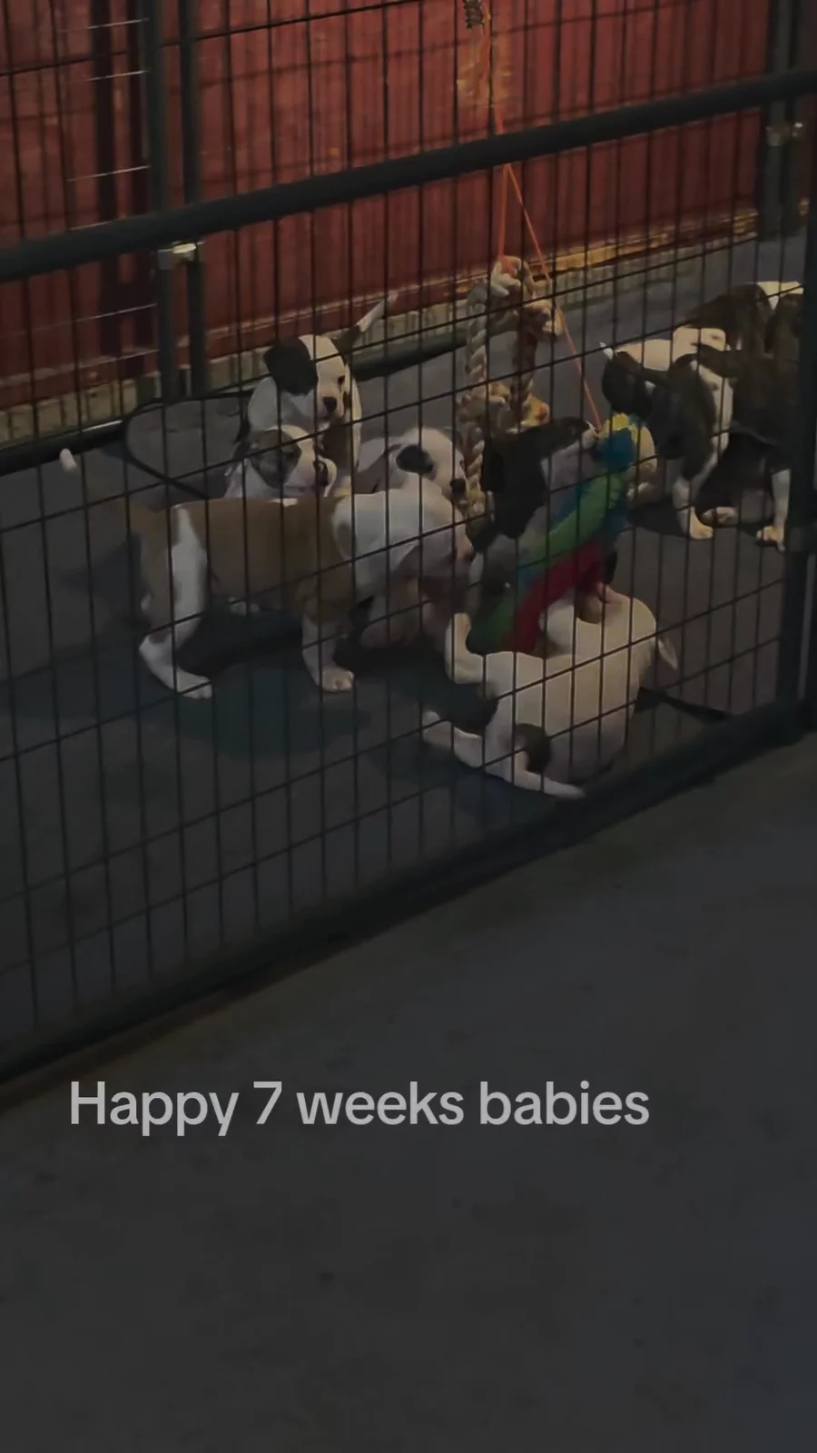 Ellen is a superstar breeder!! I have had several American Bulldogs & none of them have had such loving & attentive care from day 1! Ellen sent photos of mom even before the first puppy arrived; her “birthing box” was like a spa room, with a big pregnancy pillow, warming lights & a safe, large enclosed space where mom could feel comfortable bringing her babies into the world. She face timed me as they were being born so we could watch; it was AMAZING!! We KNEW our baby the moment she arrived, she was born 4th & we just felt she was meant to be ours. ❤️ We were hoping for an all/mostly white one & our Raven was THE ONLY white one in the dozen!! She looks exactly like her mama, with one black “Raven’s wing” by her right eye 😍 Ellen kept us informed several times a week with updates & more than tolerated my “new mom” nervousness (this is the youngest puppy we’ve ever had & wanted to have everything perfect for her arrival & growth). Ellen is so kind, caring& patient & kept that kennel of 12 puppies so clean & had the brilliant idea to mount the water buckets to the sides of the enclosure to allow for fresh drinking water at all times without the chaos of them constantly getting knocked over! 👏🏼 There were some issues with transportation (due to unforeseen changes in the circumstances of the transporters). Ellen stayed on the phone with me for HOURS until we were able to find someone to trust to bring our girl all the way to AZ! That is truly above & beyond care for her puppies & their prospective homes & families!! Even after further unforeseen travel issues (in which Ellen even got involved to assist me in keeping track of Raven & communicating with us & them daily, as the transport team wouldn’t respond to me!) ELLEN made sure that our baby girl got to us!! Even after all the travel issues, the puppy we received was still the same smart, loving, funny, sassy stubborn, beautiful girl that we had watched grow up from day one!! That kind of resilience & confidence in a 8 week old puppy, despite adversities, doesn’t just happen, THAT comes from KNOWING she is loved & constant dedication from the very beginning!! Ellen, we do not have the words to describe our gratitude for ALL that you have done for our precious girl who will be our loving companion for many years to come!! If you are looking for someone who raises not only good looking pups but those with loving, confident personalities, look no further; they DO NOT make breeders like Ellen!! 🎉❤️ THANK YOU!!