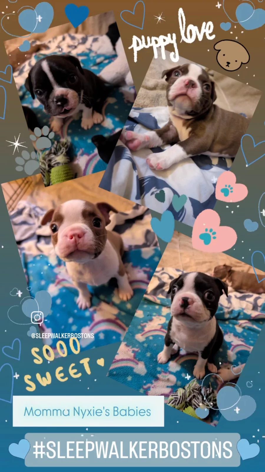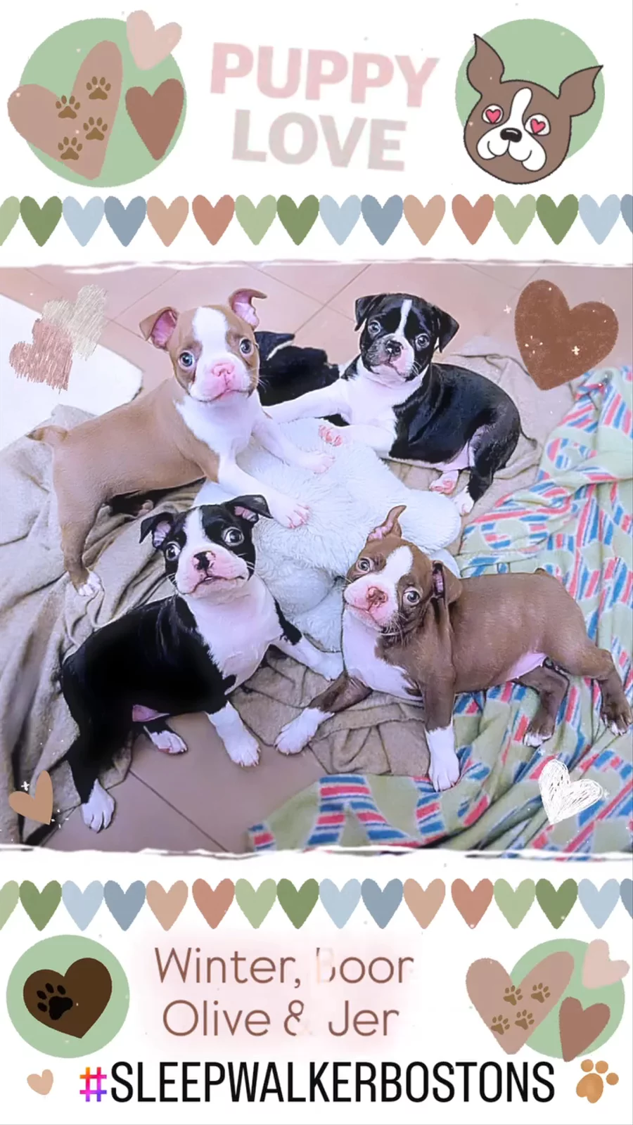 Anna is the BEST BREEDER- hands down! It’s like she was born for the job! The updates, pictures, and genuine love and kindness she showed our puppy has been so apparent as he continues to grow! He is SO smart and sweet, not to mention healthy- I really appreciate how Anna and Sleepwalker Bostons truly took every moment of our puppy’s life and filled it with love. ❤️ I recommend Sleepwalker Bostons to anyone looking for a smart, handsome and true to breed Boston Terrier!!!!