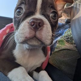 Anna with Sleepwalker Bostons was a pleasure to interact with for the entire process of having Fergie join our family. She was available with very prompt replies with any questions and set up FaceTime video chats at a scheduled time that worked for your family if needed. She sent out weekly updates with a lot of individual photos of each puppy and each puppies weight in a private Facebook group. It was nice to see the interaction with all the families. She also sent out many photos and videos during the week of the puppies and their mom, Serana. She kept in touch through the entire process and was so accommodating with establishing a Puppy Pick Up date that worked with our family. Finally, she even provided our family with a gift basket which contained items I forgot to pack for the ride back home. We are enjoying each day with our new little baby Fergie. You can just tell Anna and her family gave Fergie and her siblings so much love by the amount of love Fergie gives us and how easily she is settling in to our family.