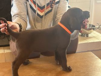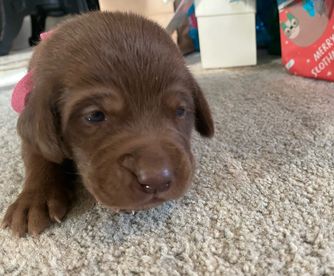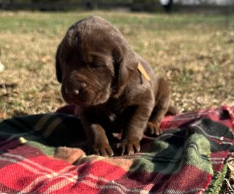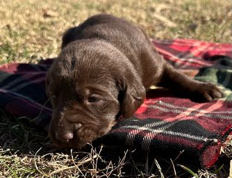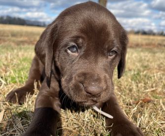 I have a foundation dam, SHF Dove, who is a beautiful dark chocolate lab with very refined features, correct conformation, and the sweetest personality. She had an outstanding litter of puppies in December 2023; all puppies remain with their loving families. One male from this litter earned his AKC title of "STAR puppy" as a 4-month old; he and his siblings continue to receive rave reviews.