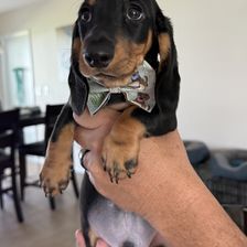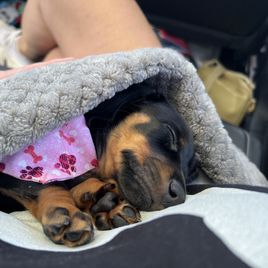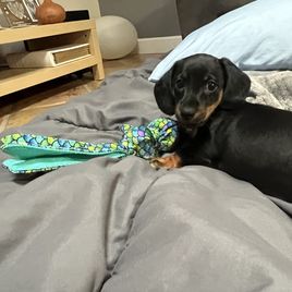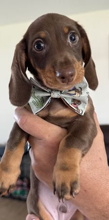We just had to share how absolutely wonderful our experience with Slinky's Dachshunds was, all thanks to Samantha! As first-time online pet buyers, we were pretty nervous, but Samantha made everything so easy. She was a true pleasure to work with, sending us lots of photos and videos of Basil (now Benji!) and patiently answering every single question we had. The entire process was completely seamless, which we credit to Samantha being such an incredible breeder. From day one, she was incredibly organized, providing all of Benji's paperwork, updated health records, and even a sweet goody bag packed with essentials. What truly sets her apart is her dedication: she checks in with us regularly and is always available, literally 24/7, whenever we have questions or concerns. Thank you so much, Samantha, for bringing Benji into our lives and filling our hearts with so much joy! We couldn't be happier.