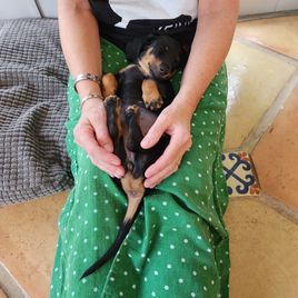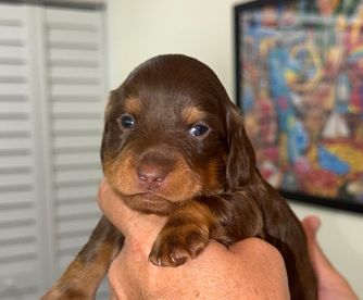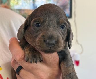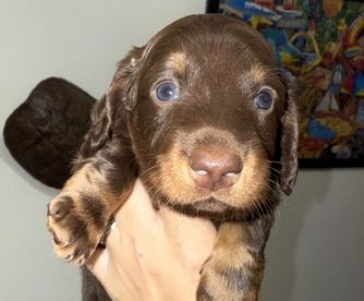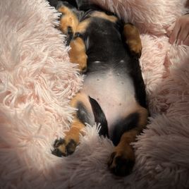 I had a wonderful experience working with Samantha and Brian from Slinky’s Dachshunds and couldn’t be happier with our new puppy. From the very beginning, they were very professional, knowledgeable and truly dedicated to raising healthy, well-socialized puppies. Communication was excellent-they answered all my questions, sent regular updates, and provided pictures and videos so we could watch our puppy grow. It was clear they care deeply about their dogs and put a lot of effort into early socialization, proper nutrition and a clean safe environment. When it was time to bring my puppy home, the transition was smooth. They provided health records, feeding instructions, and helpful tips to ensure my puppy settled in comfortably. Our puppy is happy, healthy and has a wonderful temperament- proof of the breeders high standards and ethical practices. I highly recommend this breeder/Slinky’s Dachshunds to anyone looking for a well-bred, well-cared for puppy. It’s obvious they love what they do, and it truly shows in the quality of the puppy we received.