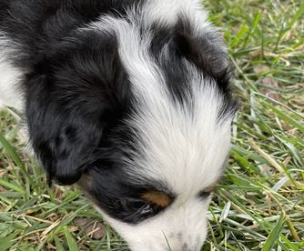 Our puppies include black & white, black tri, and blue merle. Colors will vary depending on the parent dogs.